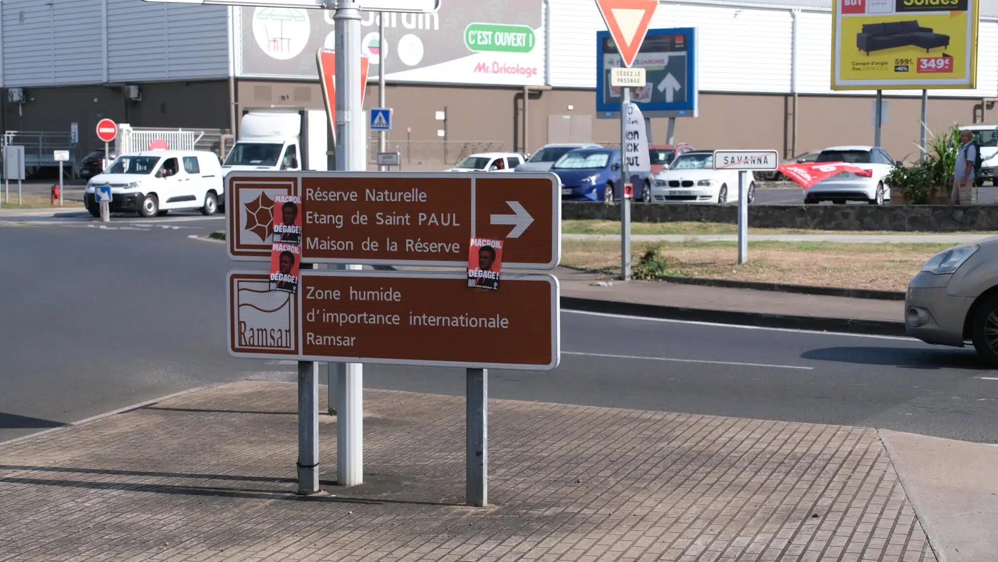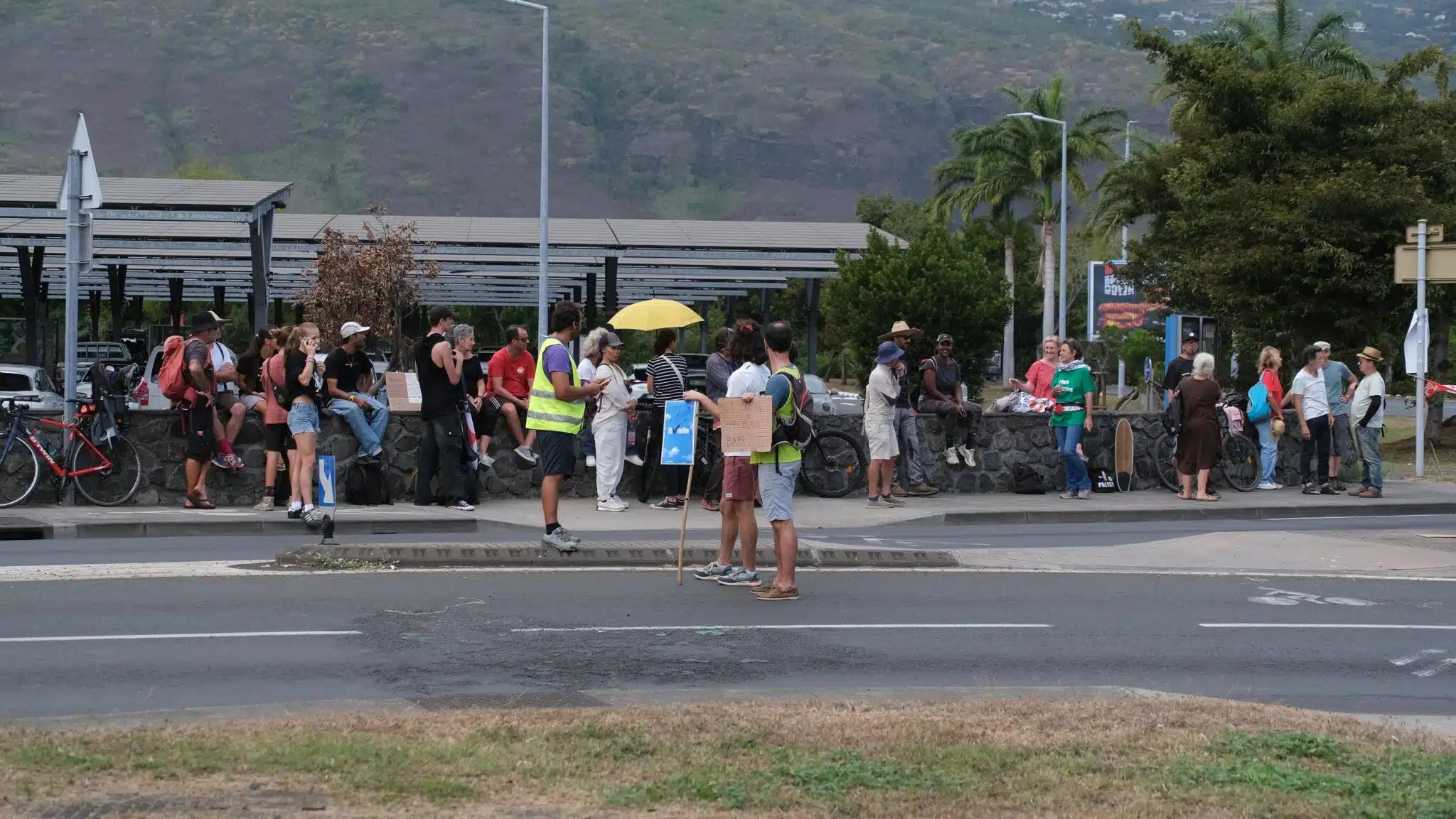Au rond-point de Savanna, ce mercredi matin, ils n’ont été qu’une cinquantaine au plus fort de la manifestation. Il y a là les militants d’Attac, de LFI dont des conseillères municipales, des têtes connues d’Extinction Rebellion. Dans l’Ouest comme ailleurs, les rues sont désertes. Les quelques automobilistes de passage prennent le tract qu’on leur tend et klaxonnent en signe de soutien. Devant le Super U de Saint-Paul, chaussée Royale, vingt ou trente autres militants, des syndicalistes FO de l’Education nationale, distribuent eux aussi des tracts en échange d’un coup de klaxon au son du maloya de l’artiste Ti Danyel.