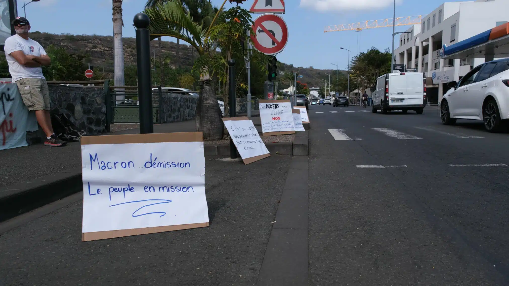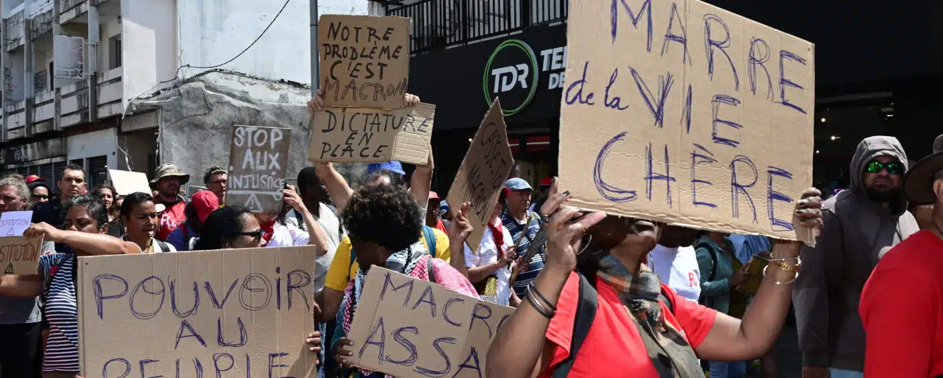Sur les pancartes, les principaux slogans s’attaquaient au président de la République : « Macron dégage », « Allez Manu, encore un effort dehors ». Mais aussi à « la vie chère coloniale » ou aux dépenses militaires : « L’argent pour soigner, pas pour bombarder ». Et toujours en toile de fond l’indignation face au « génocide » en Palestine.