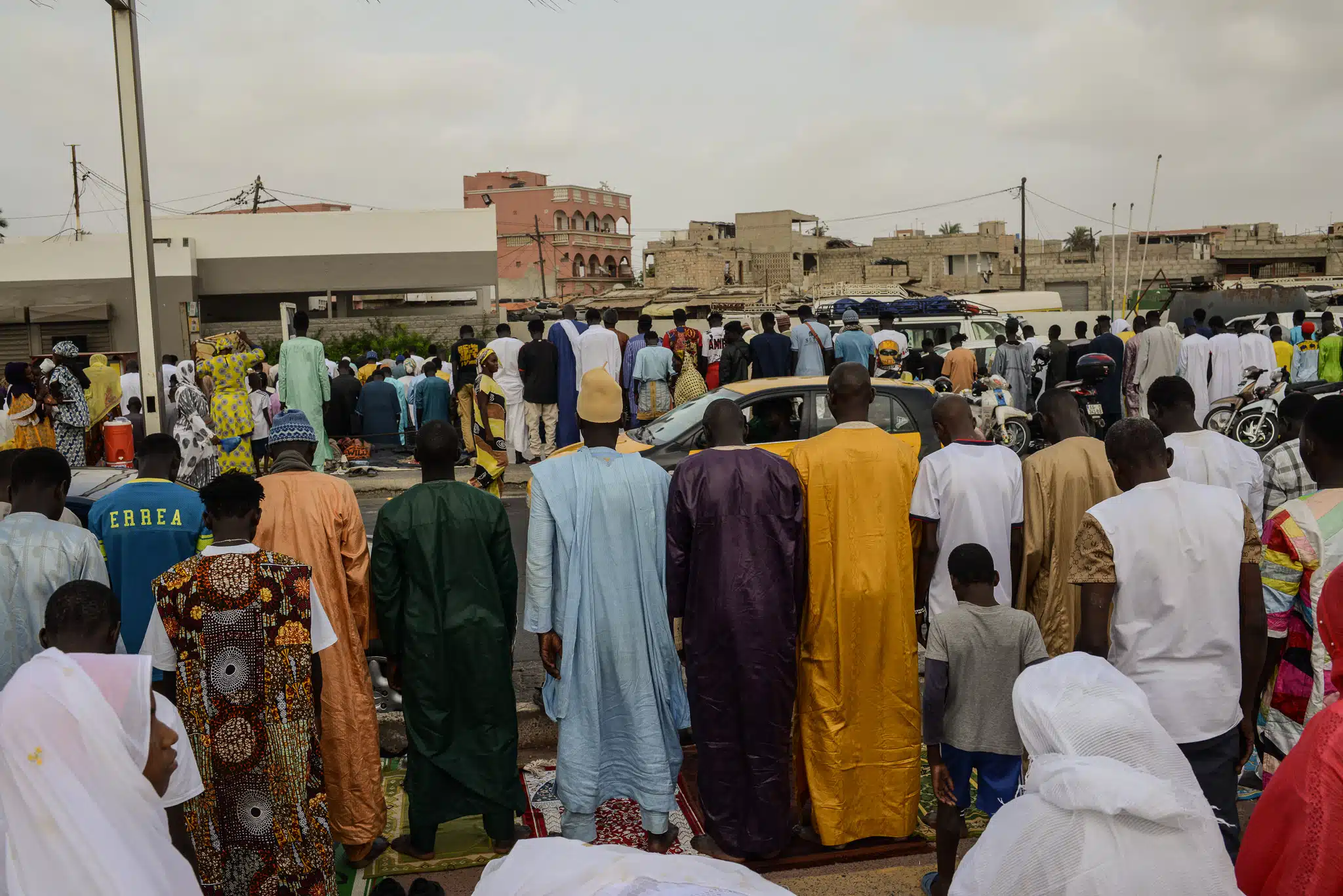 Les fidèles se rassemblent pour prier dans les rues de Saint-Louis lors de la cérémonie des deux rakkas du 5 septembre 2024. © Olivier Ceccaldi