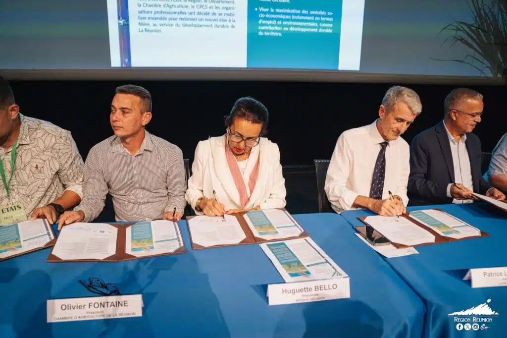 En présence d’Olivier Fontaine, Président de la Chambre d’Agriculture de La Réunion, de Patrice Latron, Préfet de La Réunion, d’Huguette Bello, Présidente de la Région Réunion, de Cyrille Melchior, Président du Département et des co-présidents du CPCS, Pierre-Emmanuel Thonon et Florent Thibault, la journée du 20 juin a abouti à la signature d’un protocole d’engagement commun. Le ministre d’État, ministre des Outre-mer,Manuel Valls, est intervenu depuis Paris à l’issue de l’événement, en réaffirmant l’importance stratégique de la filière et soulignant l’engagement de l’État à accompagner son évolution.