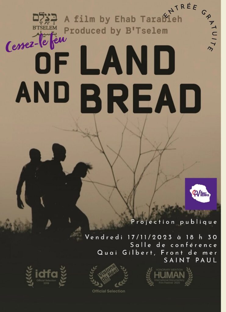 LIBRE EXPRESSION L’association Attac organise la projection publique à 18h30 du film israélien Of Land and bread sur la situation des Palestiniens en Cisjordanie le vendredi 17 novembre salle de conférence du Quai Gilbert, sur le Front de mer de Saint-Paul. Résumé L’association de droits humains B’tselem, ONG israélienne, a lancé en 2007 un projet consistant à fournir des caméras vidéo et […]