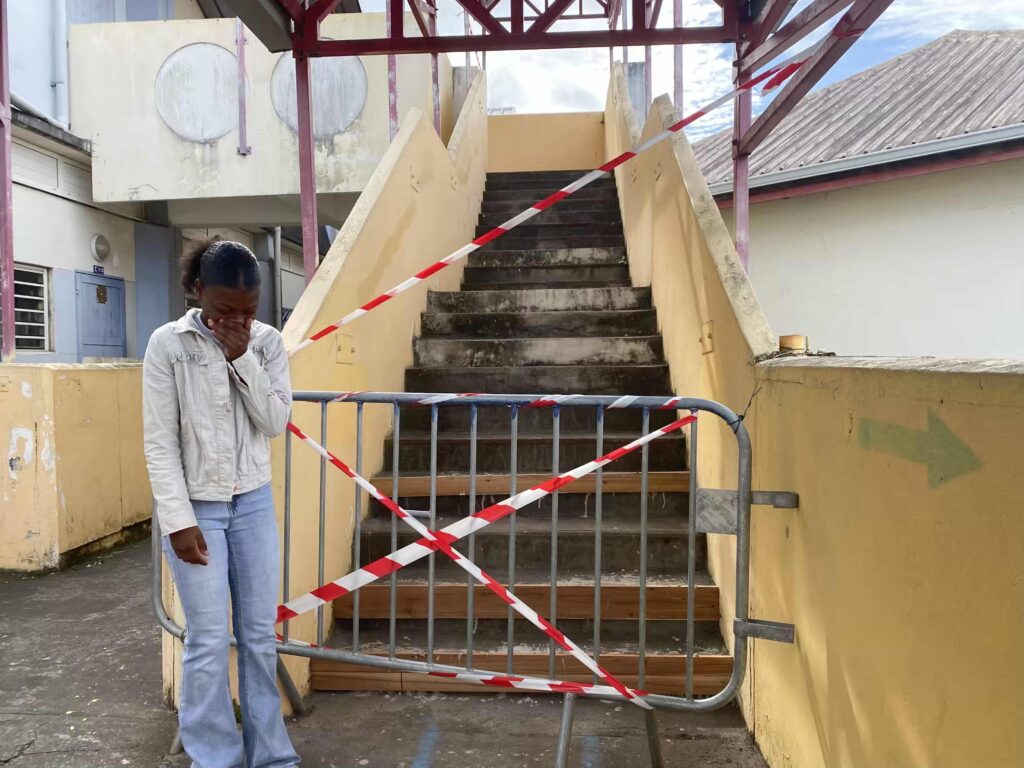 En face de la classe C113, le vieil escalier, qui a plus de cinquante ans, était abîmé. Pendant les travaux il a fallu le condamner. Ce qui obligeait Saraïta à faire tout le tour de la cour pour se rendre en classe.