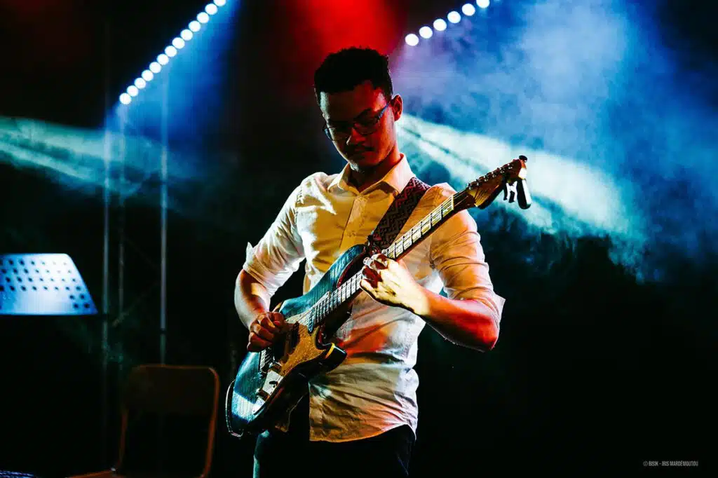 Nou plé anou osi artrouv pou swaré-là Yannick Lebeau… nou pans li dor li lév ek son giitar dann la min. Li néna biyn rézon akoz son guitar la biyn réponn ali su la senn Bsik . La not la mizik té dou pou aral publik ousa li té vé ménn bana.