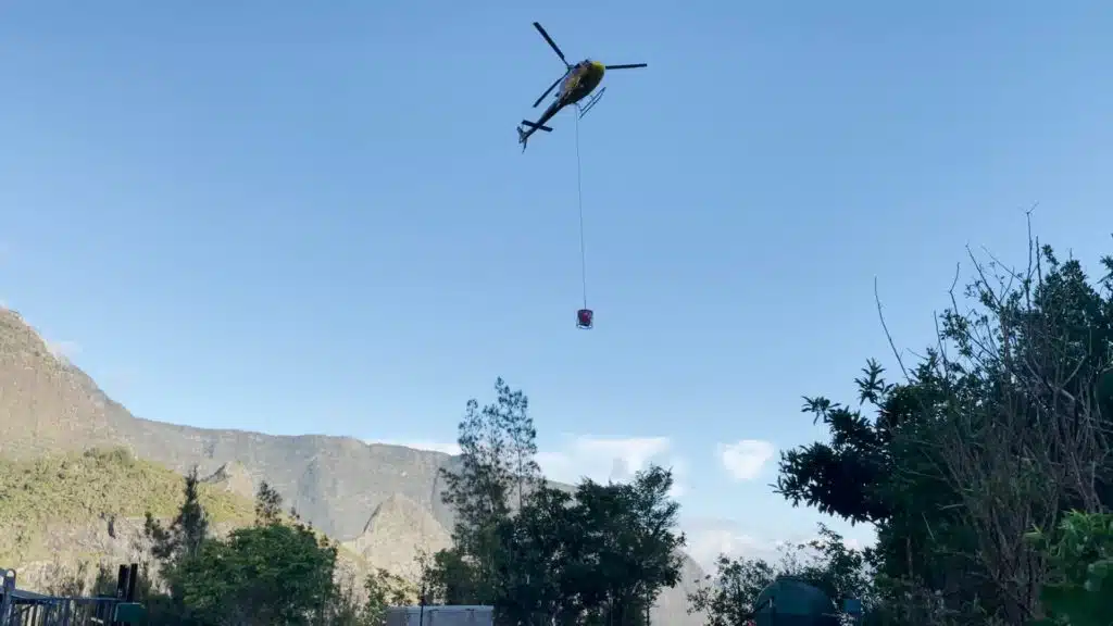 Un sacré problème que celui de l’irrigation ! « Il y a au moins 10 associations qui ont essayé d’amener l’eau. Mais c’est insoluble parce qu’il y a toujours plus de sanitaires », s’énerve le planteur. Lucide, il conclut : « De toute façon Mafate vit grâce à nous, les Mafatais, grâce aux touristes et grâce aux hélicoptères ».