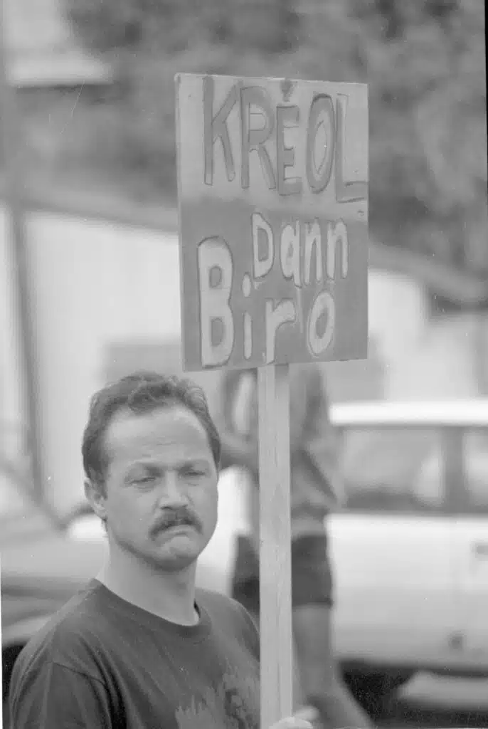 Il raconte son quartier agricole avec le kanal dolo qui coule au milieu, et les corvées qui vont avec. Et l’ambiance : « nou té naj dan in sort de metling pot kiltirel ». « Nou té vré. Nou lavé bezwin rakonté sak i spas dan nout kartyé. Kom di Alain Joron, nou la fé la révolusyon kiltirel avan lé zot. »