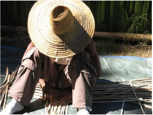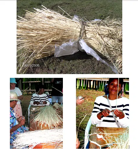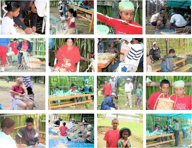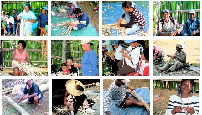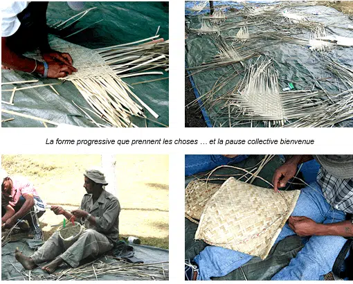 Atelier de vannerie – mai 2006 – Îlet à Bourse. Organisé sous l’experte direction de Geneviève Planchat-Bravais, l’animatrice APR de Mafate