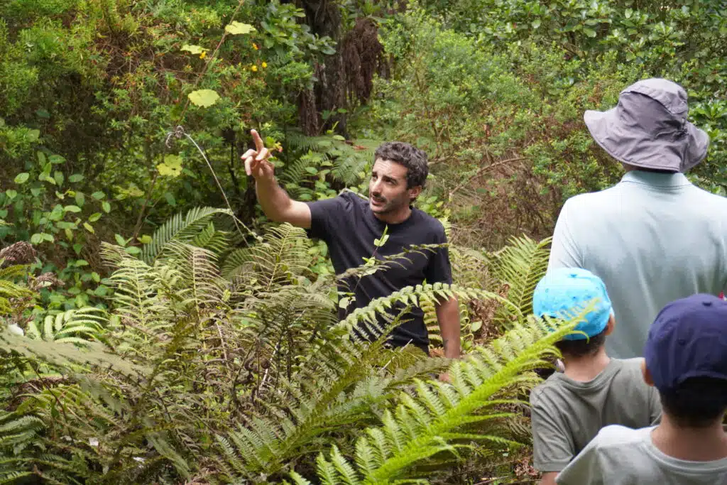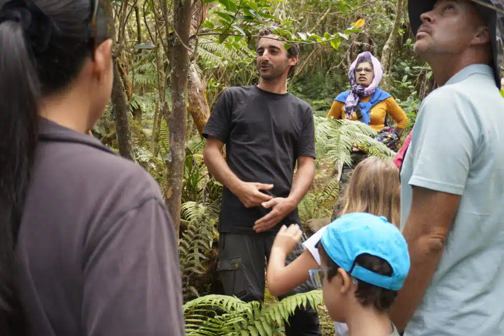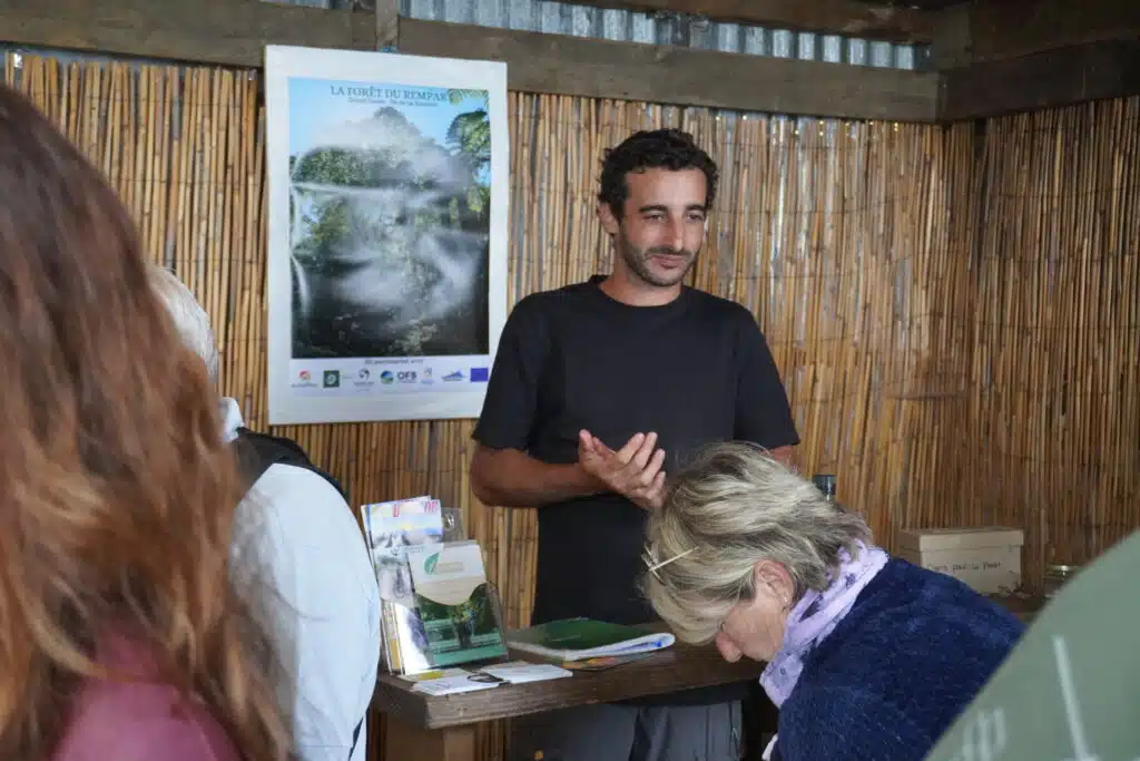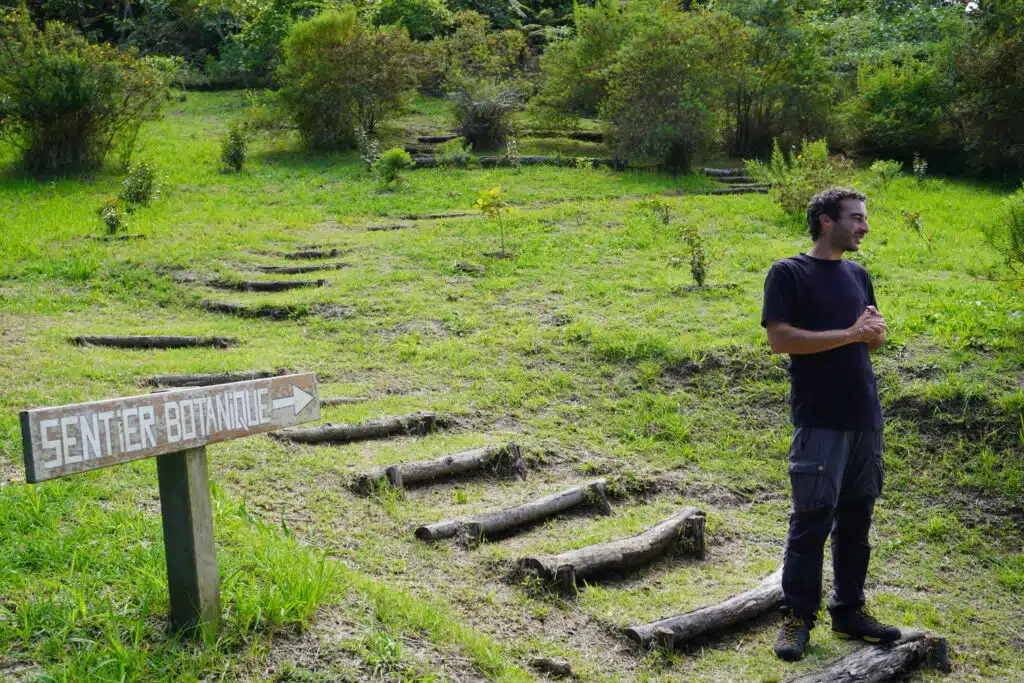 Fabien revient sur les débuts de l’aventure. « Avant ça, je travaillais dans l’hôtellerie, Jay dans l’insertion professionnelle. On avait des activités qui ne répondaient pas à ce besoin de sens qui était important pour nous. Au même moment, la personne qui habitait là s’en allait. On est tombé amoureux de la forêt. En l’explorant, on a vu qu’elle était en danger. On a eu envie de devenir acteurs de la préservation de l’environnement de La Réunion, sensibiliser les gens à sa beauté et aussi aux menaces qui pèsent sur elle. » Les enjeux sont importants, la forêt se trouve en bordure de la forêt primaire, classée cœur de Parc national, un hot spot de biodiversité. « Pour moi, il y a aussi un coté patrimonial que j’avais envie de préserver pour transmettre un jour cette forêt dans un bon état », ajoute Fabien.