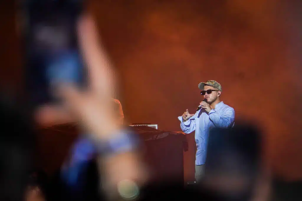 Hamza, qui avait pris le dernier créneau de la grande scène pour le premier soir, était très attendu, surtout par les jeunes. Il n’a pourtant pas fait l’unanimité en arrivant sur scène en retard puis en quittant pile à l’heure. Pas d’interaction voire peu avec le public pour le rappeur belge. Avant lui sur la même scène, Ibrahim Maalouf, trompettiste international, venait une fois de plus au Sakifo. Son concert a été écourté, semblerait-il à cause de spectateurs qui criaient « Hamza ! » entre ses morceaux. L’artiste a donc quitté la scène avant la fin. Une déception pour ceux qui étaient venus exprès pour lui. En plus, une pause d’une heure séparait les deux artistes. L’attente était encore longue pour les fans venus voir le rappeur.