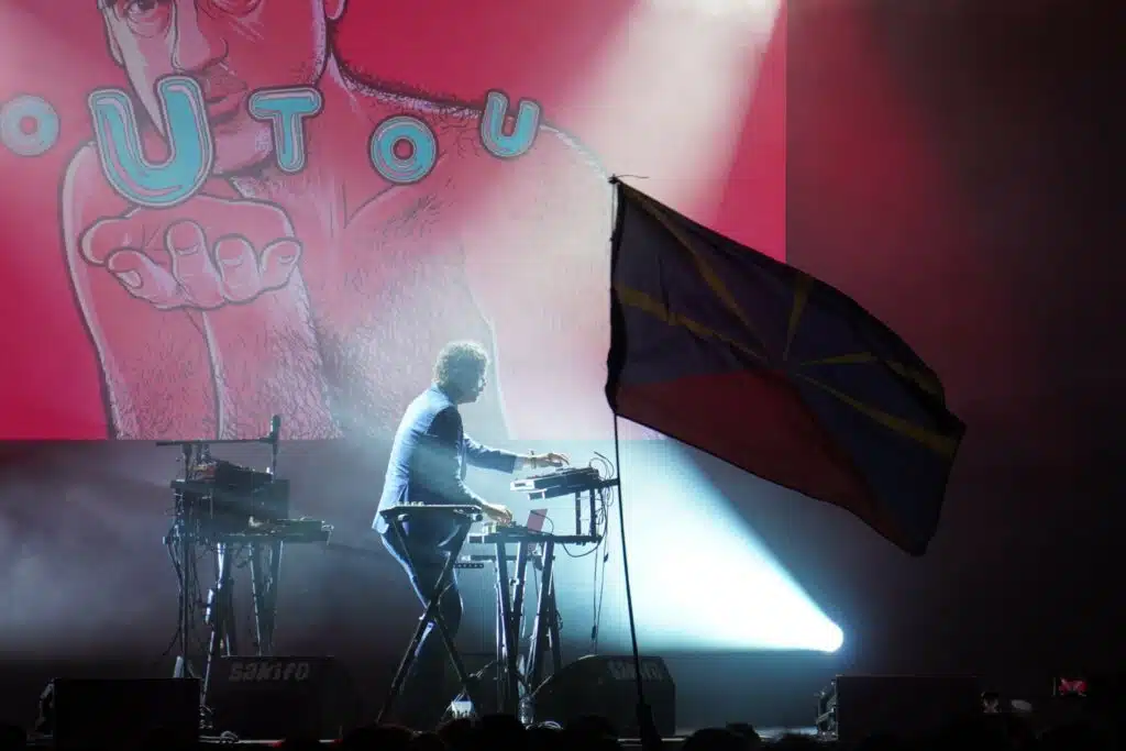 Dombrance a fait danser tout le monde avec son style rétro, électro, disco et funk. Seul avec ses deux machines sur scène, on remarque la complexité de sa musique. Il a même recommencé un morceau, peut-être à cause d’un problème technique ou une erreur de sa part. Sa patte se distingue dans son projet « Présidentielle », où il compose des morceaux portant le nom de politiciens français, injectant une dose d’humour dans ses morceaux. Les illustrations sur scène ont été très bien reçues par les festivaliers, rendant vivante sa musique atypique.