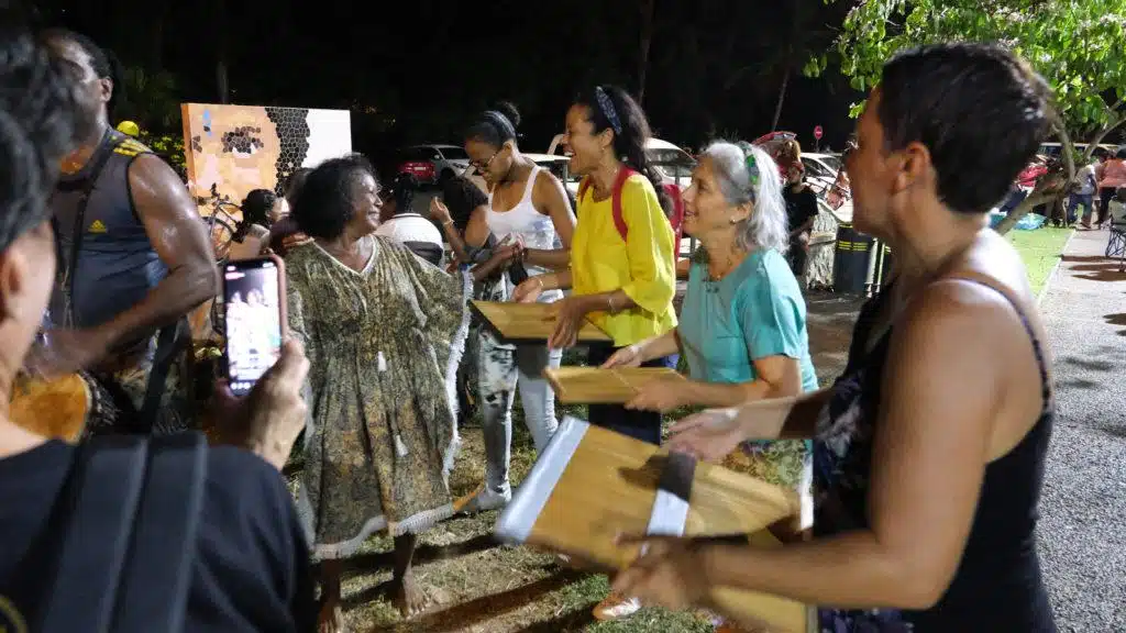 Lambians kabar léla. Il y a les tontons, les grands frères, et aussi les jeunes générations. On reconnait Lélin Gado, Didier Thomas, Eno Zangoun… La maman de Lohan, 9 ans, et de sa petite soeur Naémi, qui ne quitte pas son kayamb, souligne qu’ « il faut que les enfants apprennent, c’est leur culture ».
