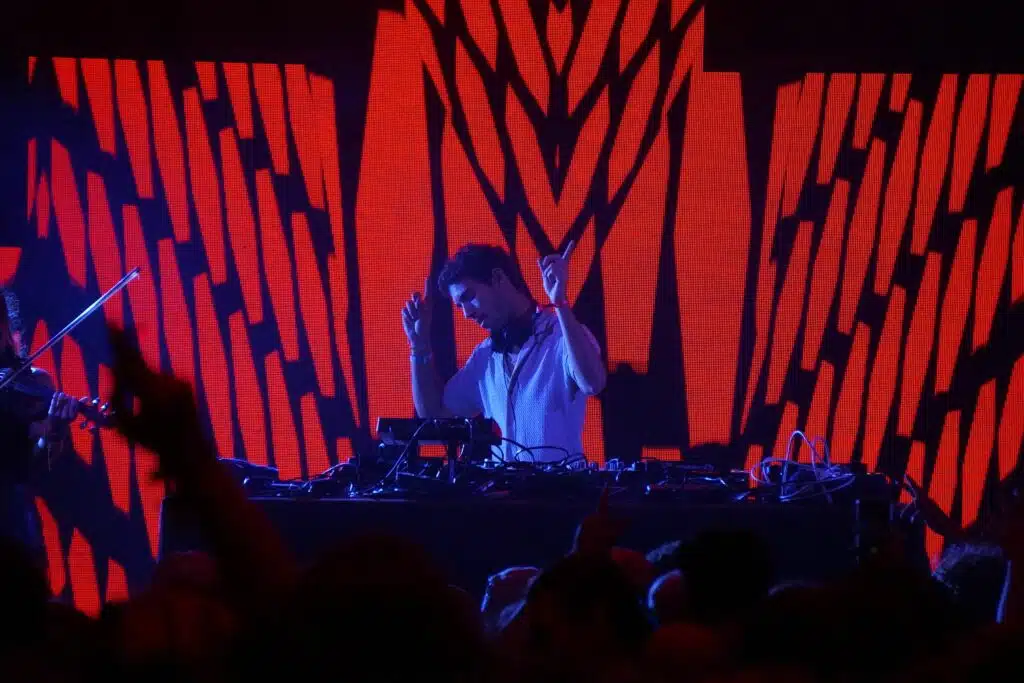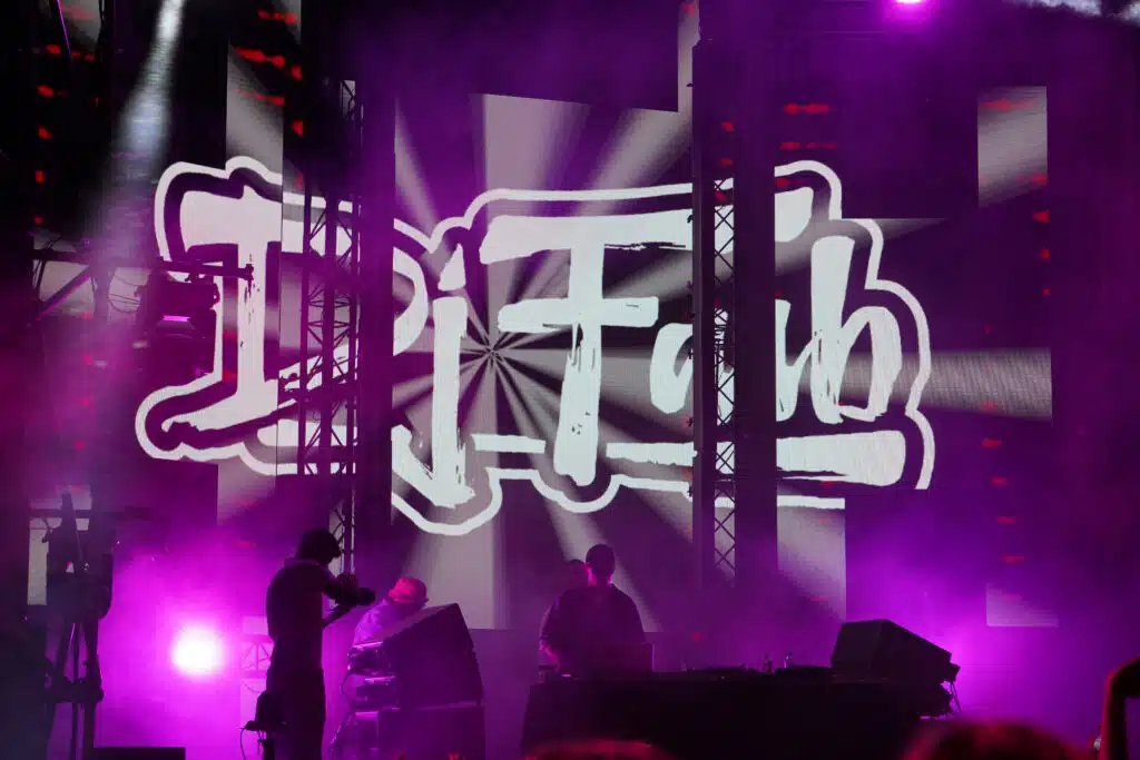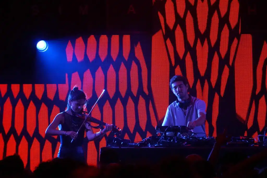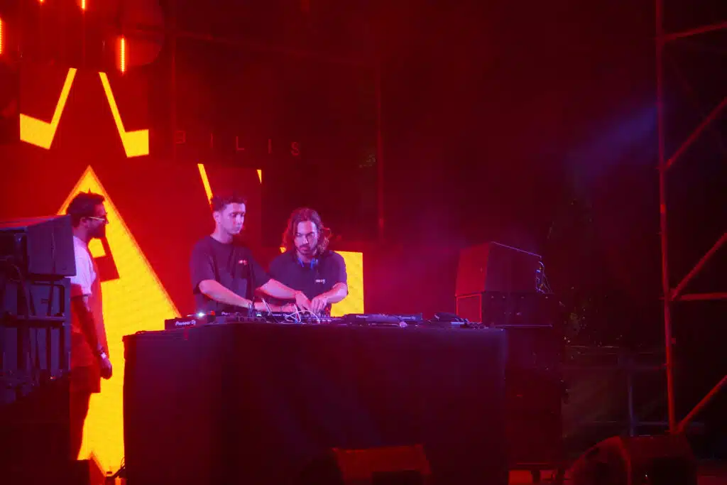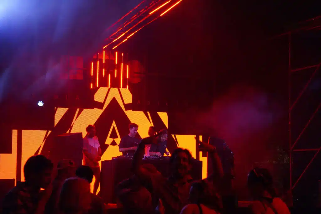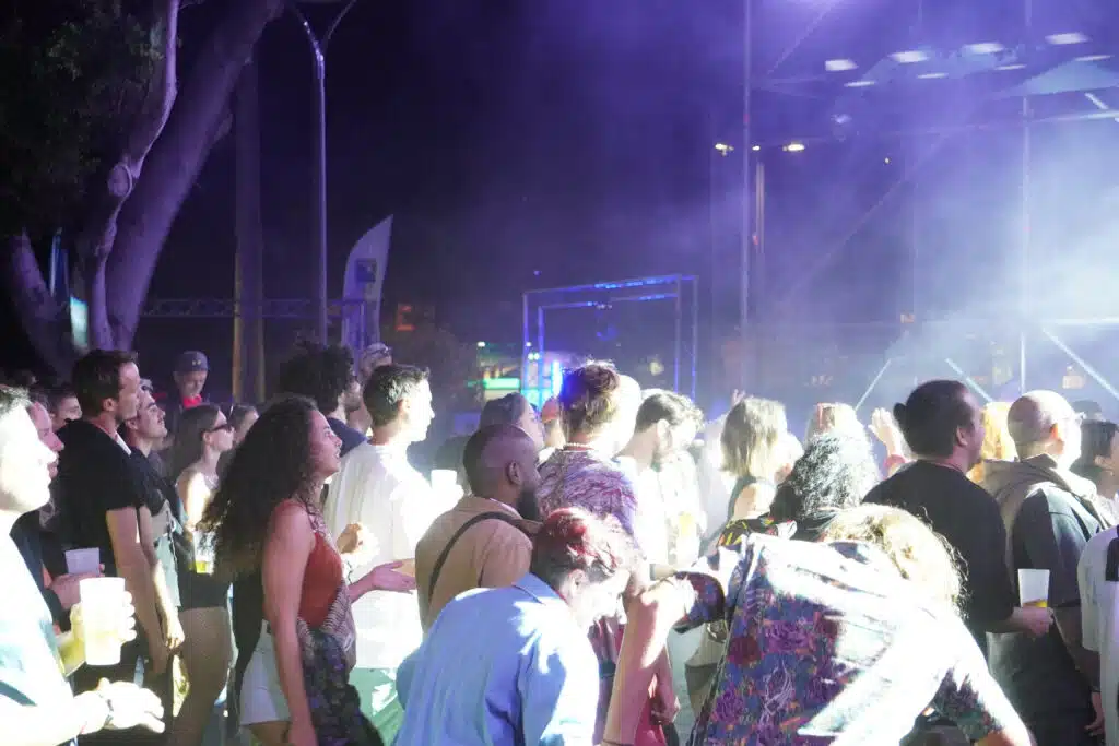 Ce vendredi, sur la scène alternative, c’est le collectif La Noubanana qui a ouvert les festivités avec un set electro techno. Située au fond du site, la scène alternative offre une ambiance intimiste tandis que les néons rouges et orangés renforcent cette atmosphère feutrée en ce début de soirée.