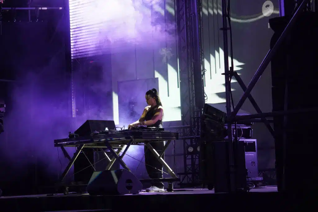 Les artistes se sont succédé.e.s par la suite, avec le set d’Andrea, artiste originaire de l’île Maurice ayant pris possession de la scène principale avec un set mêlant techno, dancehall, jazz et house. Le public occupe l’espace tandis que la foule se meut au rythme des kicks et des bass.