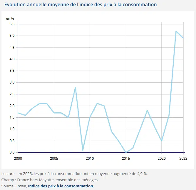En 2023, l’inflation a fortement augmentée pour atteindre 5%. Dans le même temps, les taux d’emprunts à 10 ans étaient entre 2,8% et 3,2%. En réel, la France à donc empruntée à négatif car la valeur empruntée est inférieure au coût final de l’emprunt.