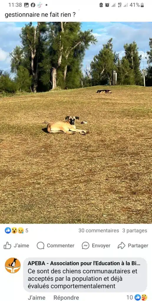 Depuis un an et demi, sur les réseaux sociaux, l’association Apeba s’était effectivement franchement avancée, anticipant l’avenir. Elle avait largement communiqué sur le sujet, considérant que les chiens communautaires étaient déjà en place, notamment sur la commune de l’Etang-Salé mais aussi à Saint-Denis, au niveau de la Vigie et du Colorado. “Ce qui était tout à fait faux”, revendique Laureen Sanchez. Et l’association Apeba avait commencé à relâcher des chiens, notamment sur la commune de l’Etang-Salé et à Saint-Denis. Elle l’a d’ailleurs elle-même conté sur les réseaux sociaux ou dans les médias, s’attirant la sympathie de certains défenseurs de la cause animale.