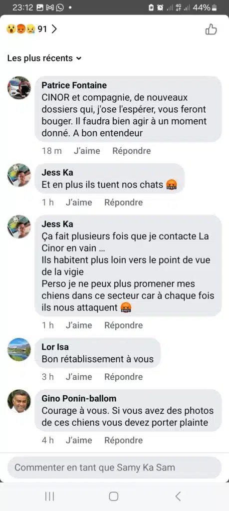 Sur sa page Facebook, l’Apeba a publié un post pour faire le bilan de ses actions. La présidente de l’association se réoriente désormais vers des projets de “chats libres” et espère qu’elle obtiendra davantage de succès qu’avec le dossier “chiens communautaires”. “On a fait du chat libre à Saint-Denis. On intervient dans des quartiers où il y a des chatons tués, empoisonnés, on les capture, on les stérilise. On a plus de 400 chats libres dans différents quartiers de la ville, avec des nourrisseurs, mais il y a tellement de demandes qu’on n’arrive pas à tout faire.”