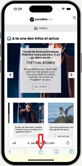 - En bas de la barre d’adresse, appuyez sur Partager