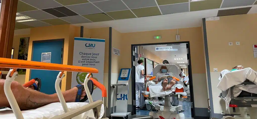 Une histoire parmi tant d’autres : Notre patient, pris de coliques néphrétiques dans la nuit de vendredi à samedi dernier, est admis aux urgences de Saint-Pierre peu avant 6h00 du matin. Il en ressortira à 17h30, un tour de cadran plus tard… sans avoir pu être scanné ou échographié. Installé seul dans une salle, puis déménagé dans une autre bondée d’une quinzaine de souffrants, puis une vingtaine. D’abord posé sur une chaise puis installé sur un brancard après une nouvelle crise de douleur, il aurait été « oublié ». Le service des urgences préfère inscrire sur son dossier qu’il n’a pas répondu à l’appel de son nom. Évanoui, endormi, aux toilettes ? A cause d’un casque sur les oreilles ? On ne s’est pas inquiété plus que ça de sa « disparition ».