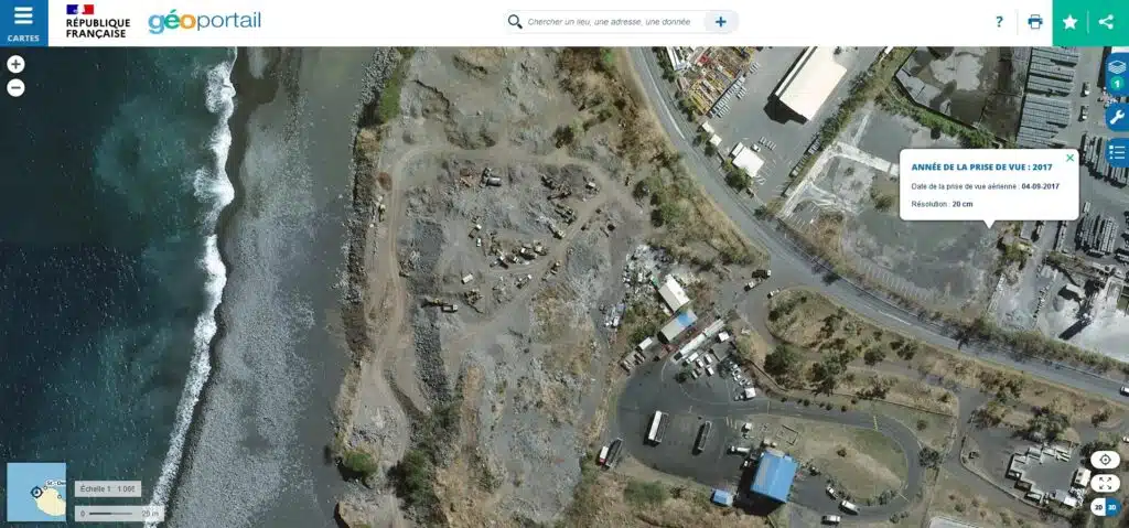 La butte de gravats s’est durcie au fil du temps. En contrebas, la plage de sable noir et l’océan, bleu turquoise. L’odeur pas très agréable d’un cadavre d’animal. Par ci par là, des bouts de ferraille, des pneus, une machine à laver, recouverts de gros galets. On se trouve sur la commune du Port, entre la déchèterie du TCO et la plage, à deux pas du port de plaisance. Jean-Claude Ludovic exploite le lieu « à titre personnel » comme il le dit lui-même, sur ce lieu qui hébergeait avant 2012 l’ancienne décharge du Port.
