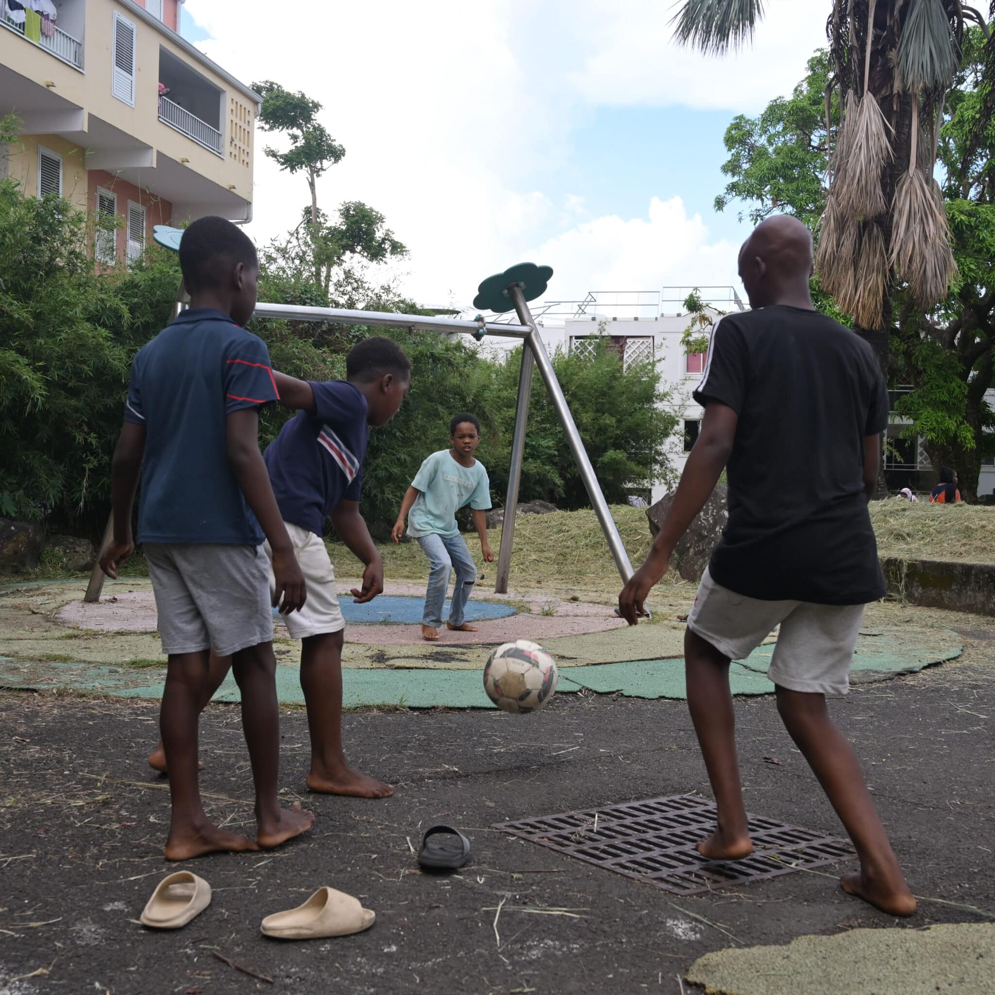 Enfants qui jouent dans le jardin du quartier de Bras-Fusil.