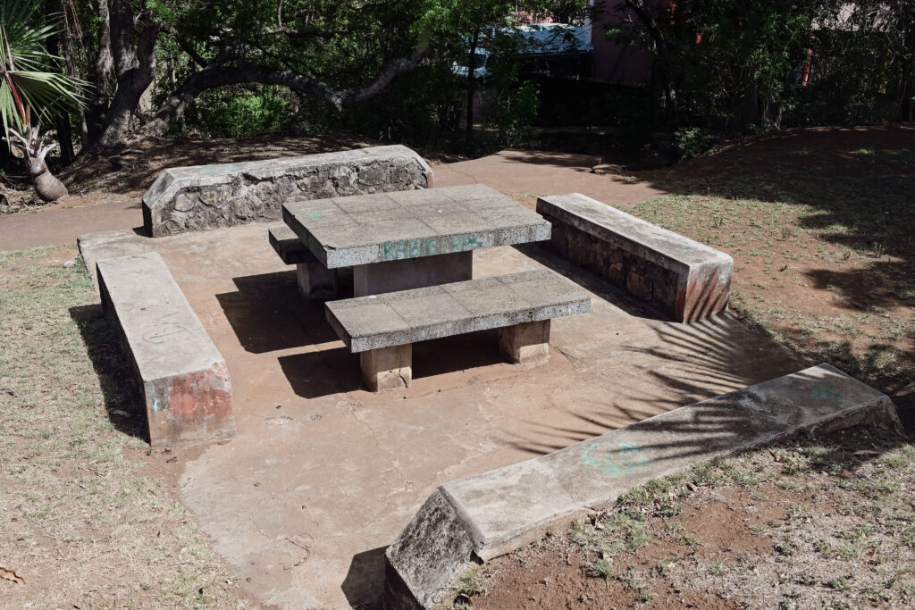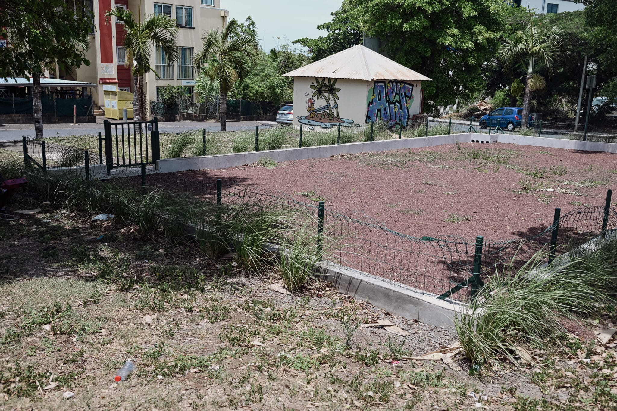 Lavoir de Basse-Terre. Terrain de pétanque abandonné qu’Alexia voudrait réhabiliter pour les habitants du quartier.