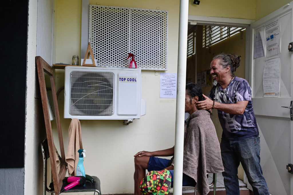Créer du lien avec les habitants, c’est avant tout un moyen d’aller plus loin : les encourager à pousser la porte du local, à évoquer leurs problématiques et à chercher ensemble des solutions. Parfois, il suffit de peu. Trois jours plus tard, lors d’un atelier coiffure organisé par Fred, bénévole depuis plusieurs années, médiateur social en fin de formation ADS (Accès aux droits et services), la dynamique est la même. Ancien coiffeur à Paris, l’atelier devient un prétexte pour accueillir les habitants, discuter avec eux et instaurer un climat de confiance. Une approche simple, mais essentielle, fidèle aux valeurs portées par La case momon lé la.