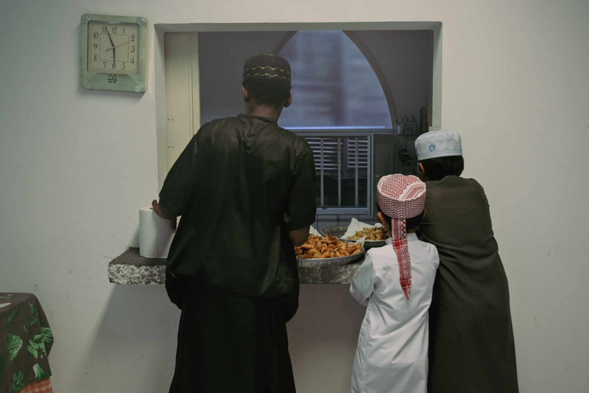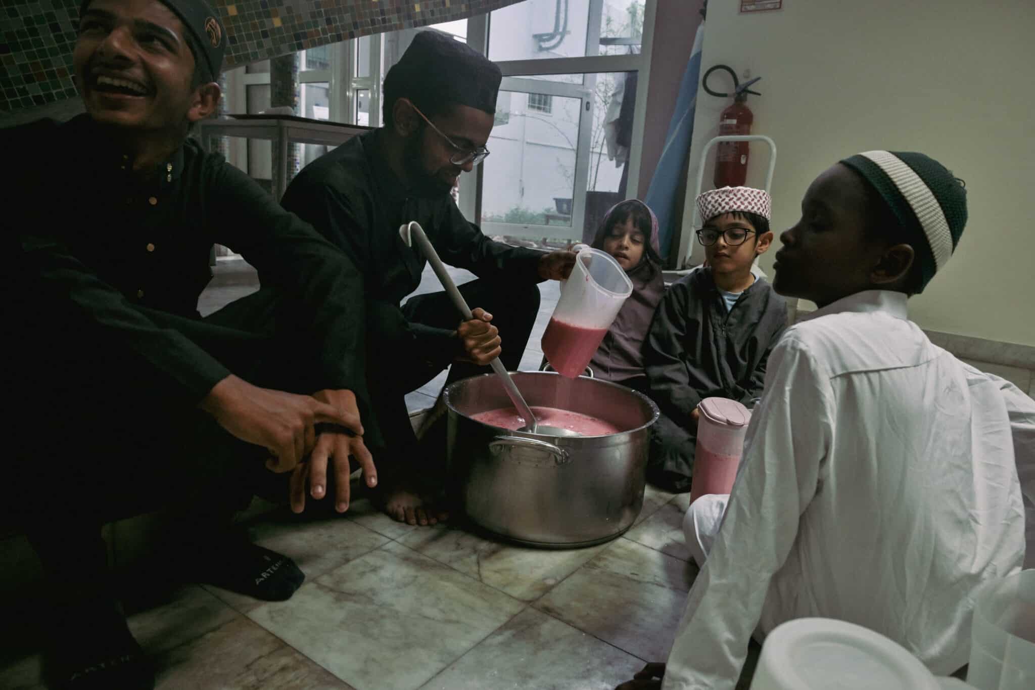 Chaque soir, la rupture du jeûne est un moment fort. Vers 17h15, le muezzin appelle à la prière de Asr, la troisième des cinq prières quotidiennes. Tandis que certains fidèles prient ou lisent le Coran, d’autres s’affairent en cuisine. Les enfants, en vacances scolaires, participent activement à l’organisation sous la supervision des adultes, distribuant des dattes et remplissant des carafes d’eau de rose. Un geste simple mais significatif, comme le souligne Ibrahim Cadjee : « Transmettre les valeurs de l’Islam passe par ces petits gestes ». Un fidèle va plus loin, « les moments de communion de la vie religieuse sont ce qui permet aux jeunes générations de ne pas perdre de vue les valeurs humaines » dans une société où « les liens se distendent avec les réseaux sociaux ».