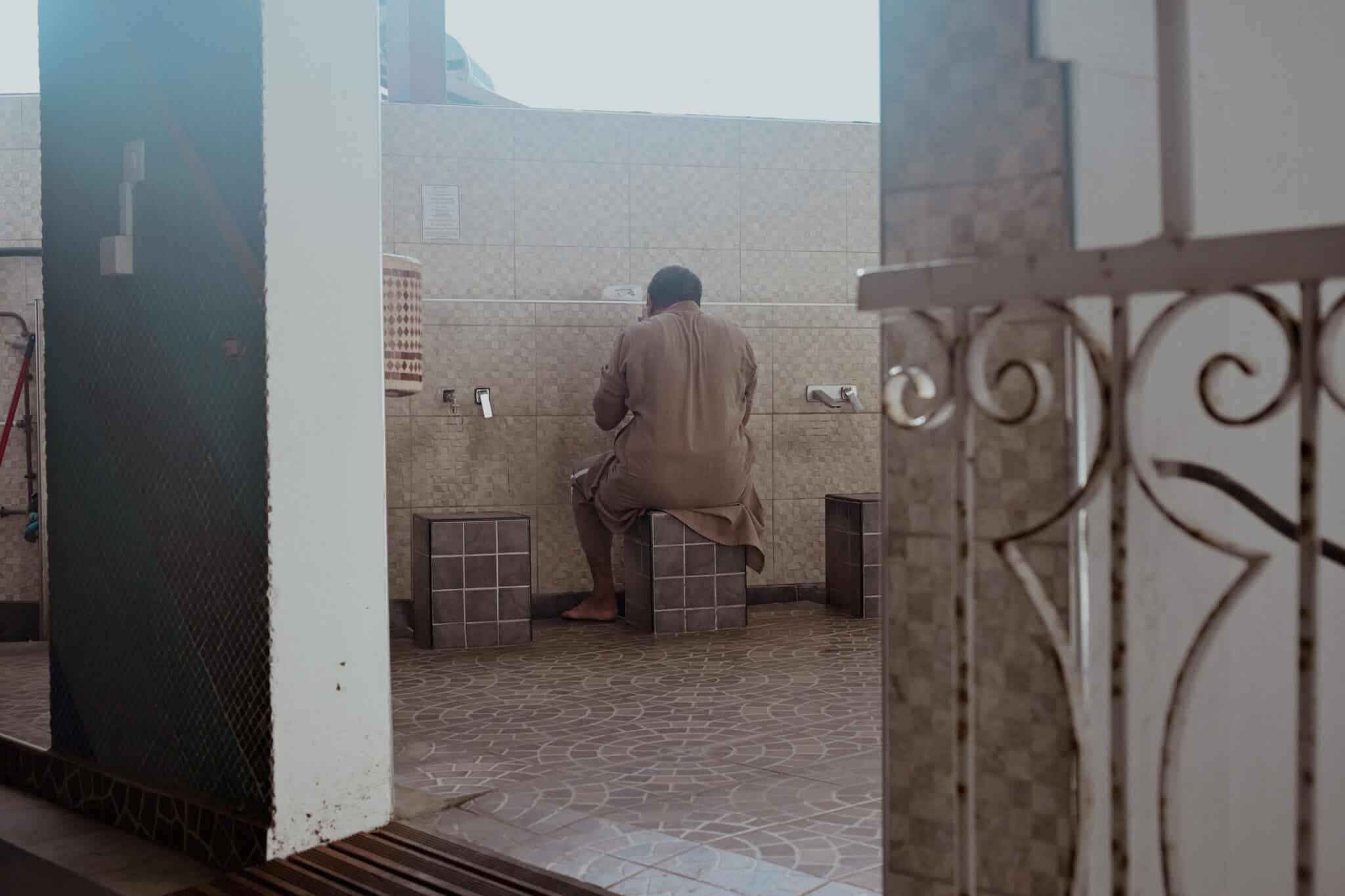 Un fidèle fait ses ablutions afin de se purifier avant d’aller prier. Des élèves de la médersa discutent une heure avant la rupture du jeûne. Chaque soir du mois du ramadan, cinq d’entre eux vont lire des passages du Coran dans les autres mosquées de Saint Pierre.