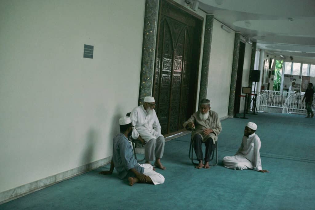 Le muezzin appelle à la prière de Asr. Des fidèles sont réunis dans l’attente du début de la prière de Asr.