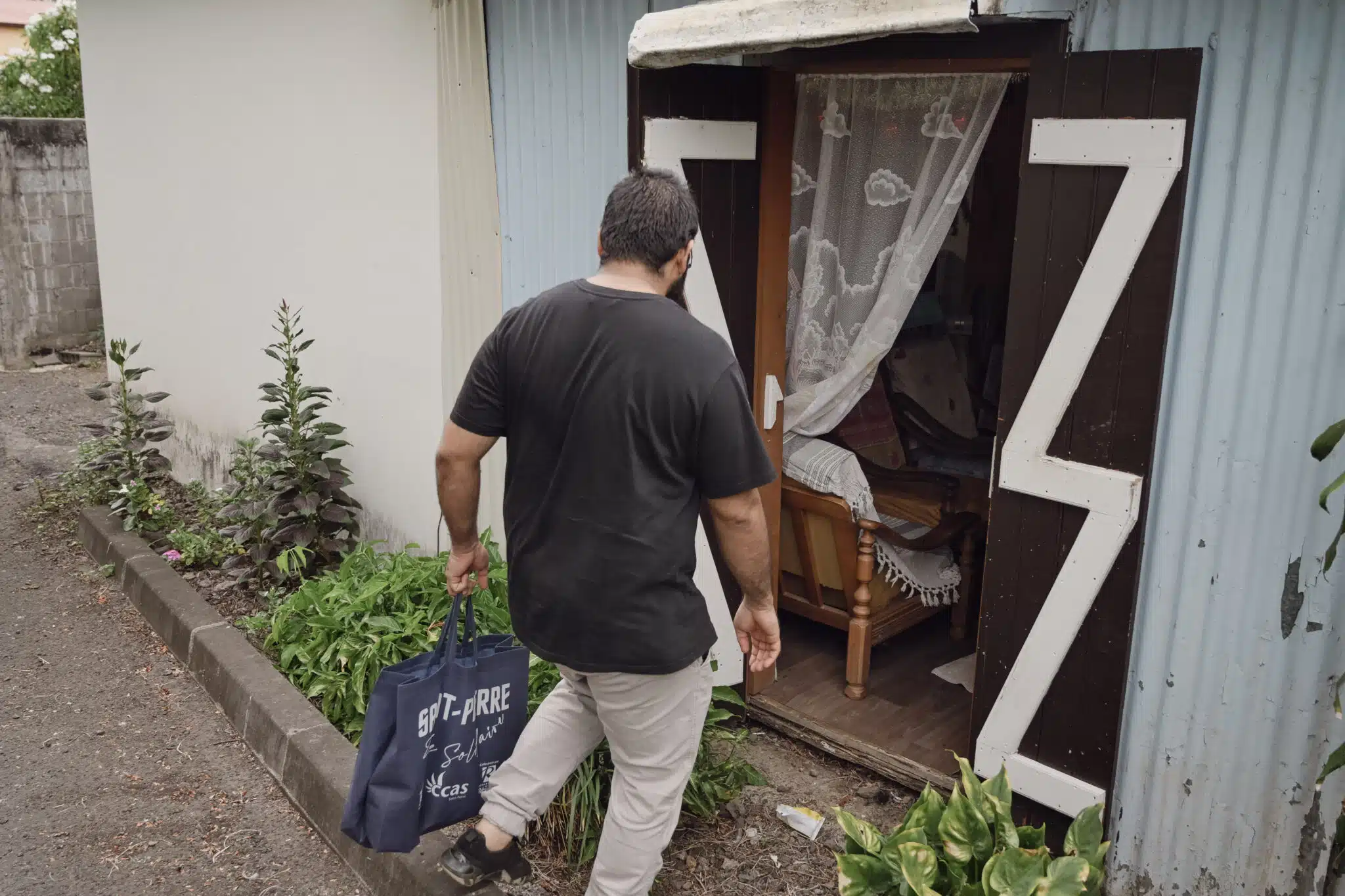 « Des cyclones, j’en ai déjà vécu ici, et jusqu’à présent, je m’en suis toujours sorti », dit-il. Pour lui, qui a « choisi de vivre dans les bois », il est « inconcevable de quitter (sa) maison ». Finalement, Patrice accepte le panier alimentaire et le kit d’hygiène remis par Stéphane, puis les agents reprennent leur route vers la Ravine des Cabris pour une autre distribution.