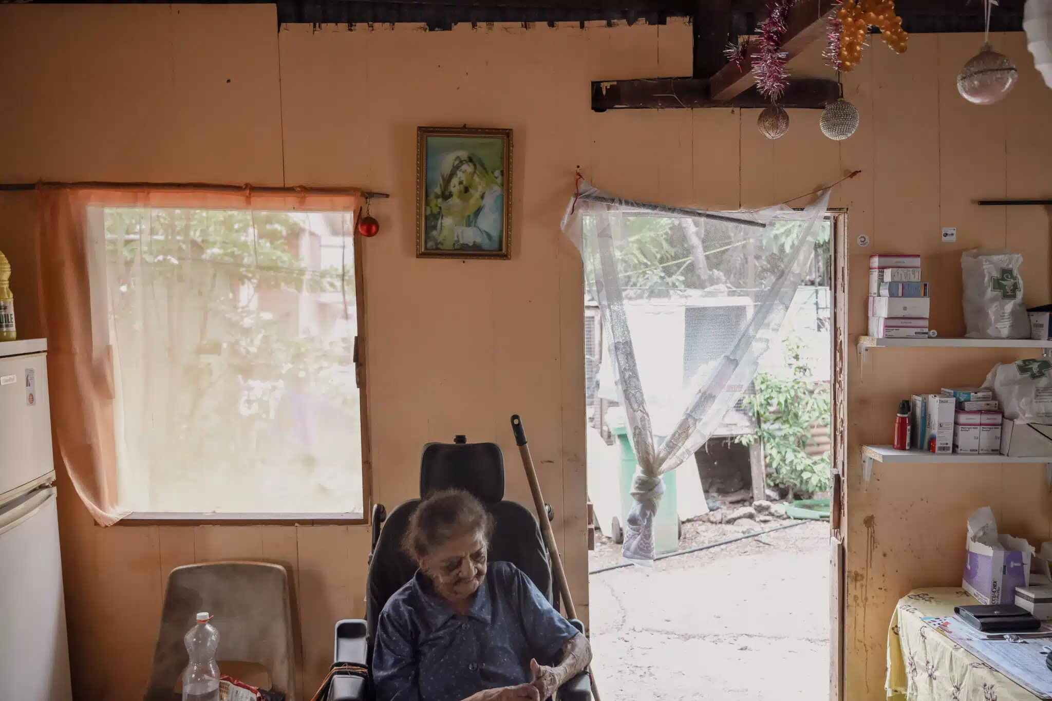 La tournée se termine dans le quartier de Ligne Paradis, chez Madame Itema Joséphine, 95 ans, qui habite seule. Abdou et Stéphane s’assurent qu’elle sera bien entourée durant le cyclone et qu’elle ne manquera de rien.