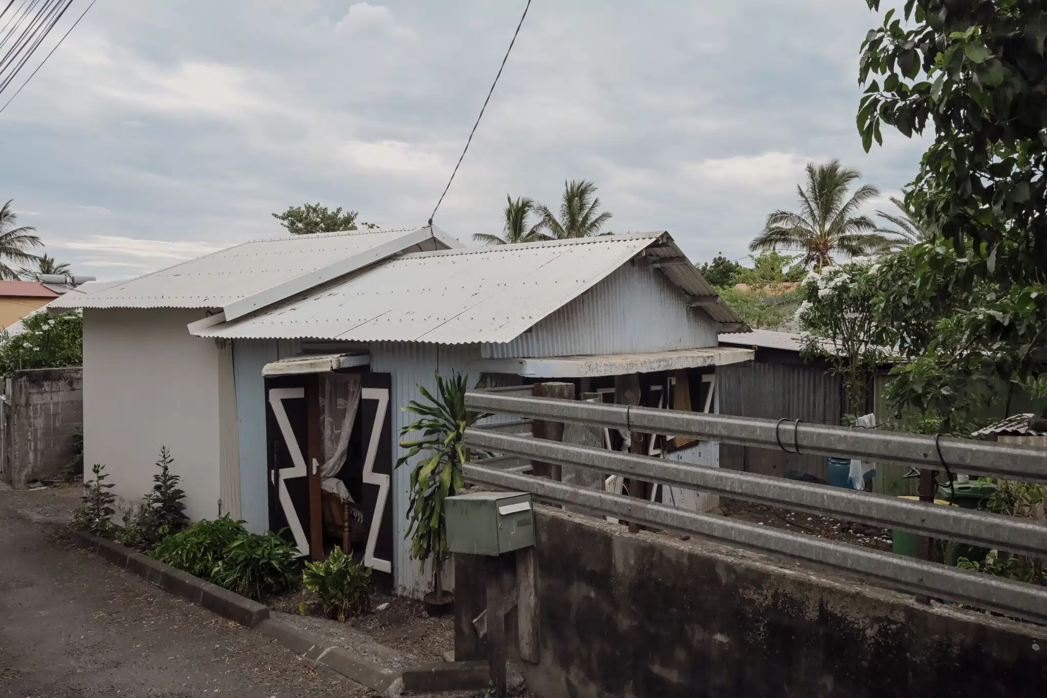Chez Monsieur Pattiama, une kaz en dur trône au milieu de la cour, entourée de kaz en tôles. Une chambre, une petite salle à vivre et une cuisine : tout cela a été construit grâce à l’aide du CCAS.