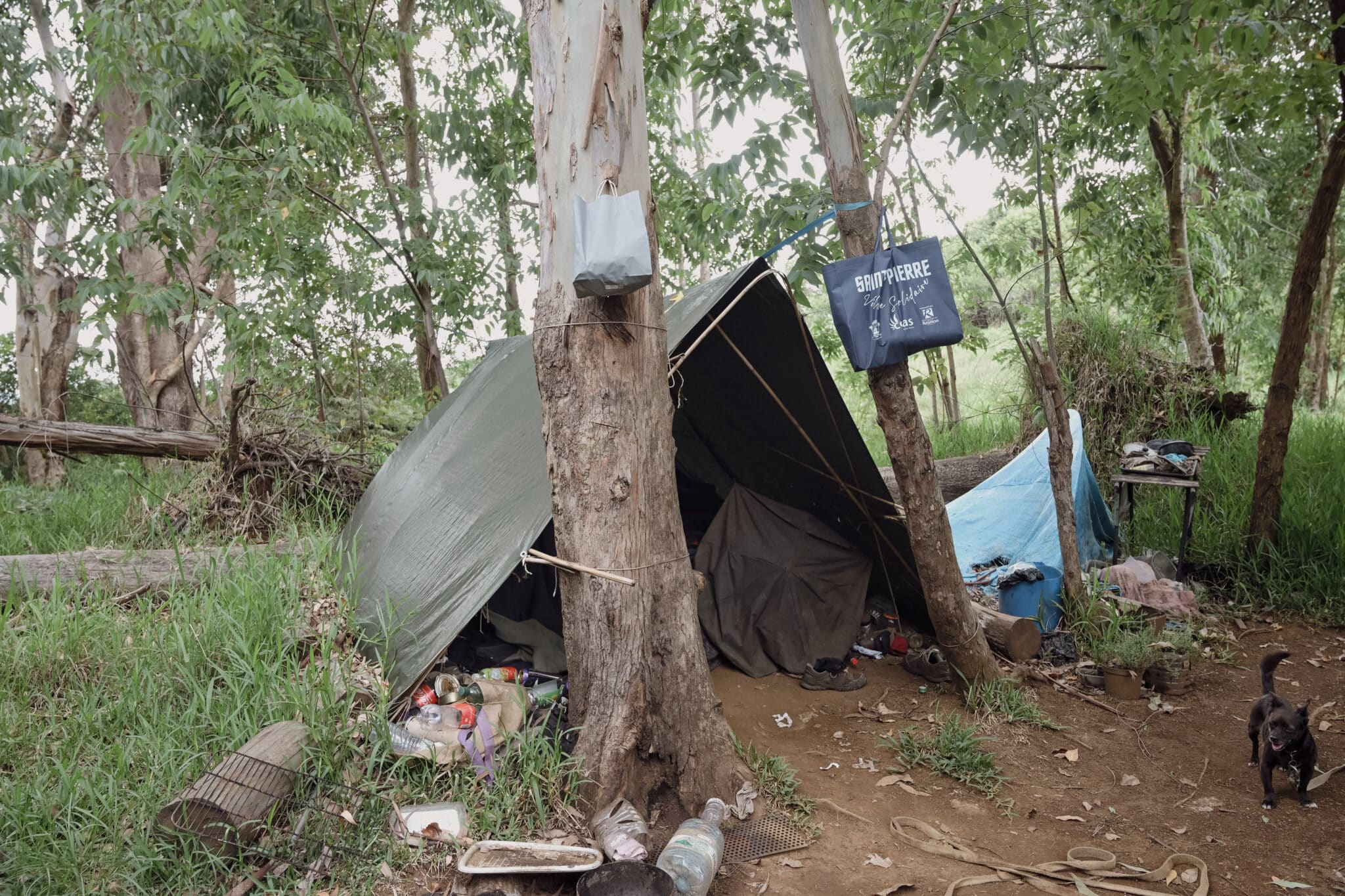 Après plusieurs minutes de discussion, Patrice accepte de leur montrer son lieu de vie : une tente installée dans les bois, où il vit depuis trois ans avec sa chienne Noisette. Le dispositif est précaire et, avec l’approche du cyclone, le risque que la toile s’arrache ou qu’un arbre s’abatte sur lui est élevé. Pourtant, Patrice reste inflexible. Malgré les mises en garde d’Abdou et le rappel de Stéphane sur l’existence d’un centre d’hébergement d’urgence à proximité, il refuse d’abandonner son refuge.
