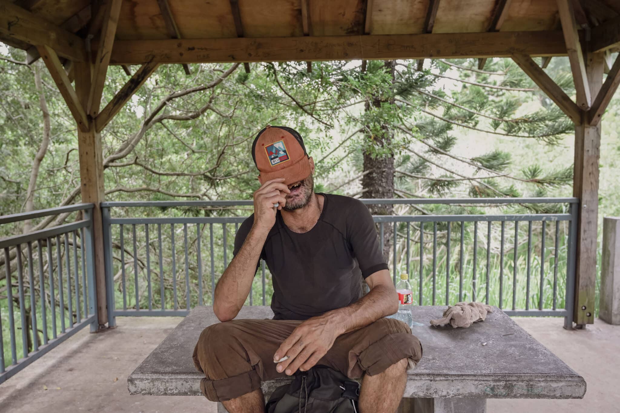 À leur arrivée au Domaine Vidot, à Montvert-les-Hauts, Patrice, un SDF de 43 ans, les attend sous un kiosque. Surpris par leur visite, il leur confie avoir reçu leur appel avec étonnement, n’ayant plus eu de nouvelles du CCAS depuis près de deux ans, date à laquelle des agents étaient venus le voir lors du dernier recensement.