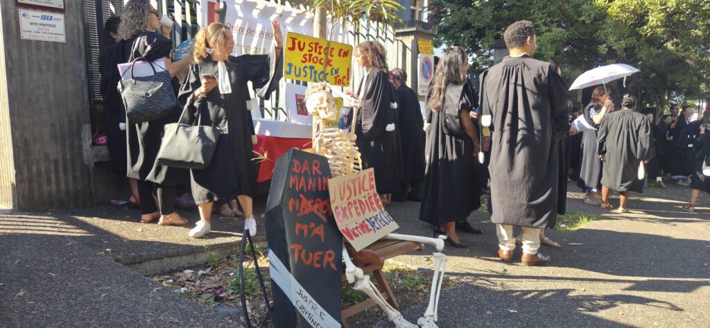 Le CRI (Collectif pour la réparation des injustices à La Réunion), récemment auditionné à l’Assemblée nationale dans le cadre d’une commission d’enquête, a aussi pris part au mouvement. Pour le collectif, cette manifestation est surtout un prétexte pour faire entendre sa voix. Jacques Gence, membre porte-parole, ne mâche pas ses mots et accuse les auxiliaires de justice de trahison dans plusieurs dossiers. « On est là pour dénoncer les injustices de la justice ! » clame-t-il sur le trottoir d’en face de la mobilisation des avocats.
