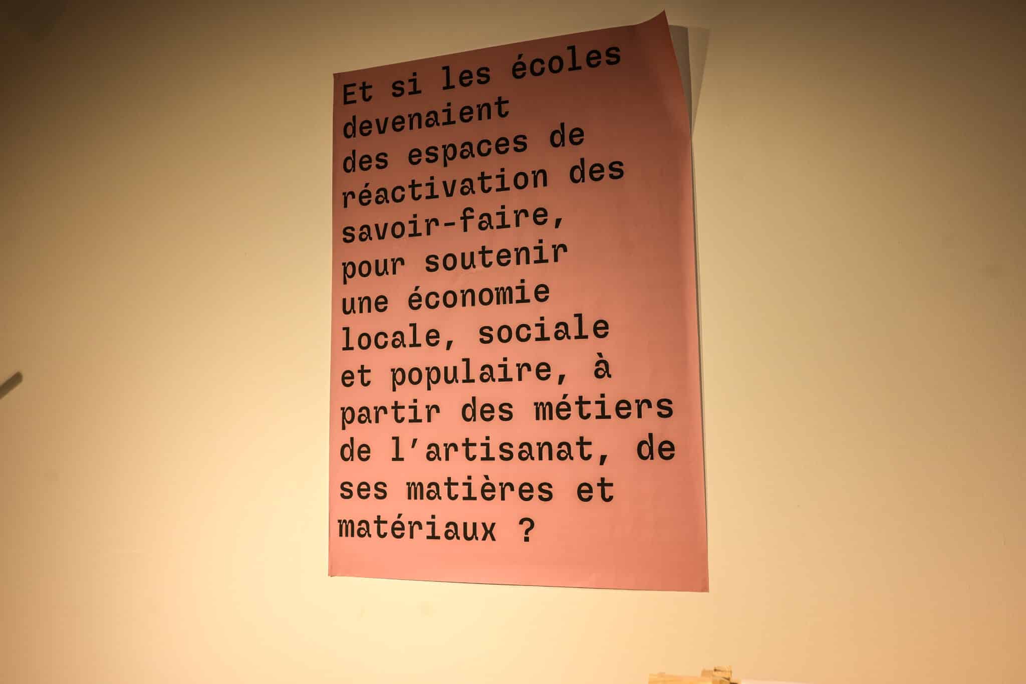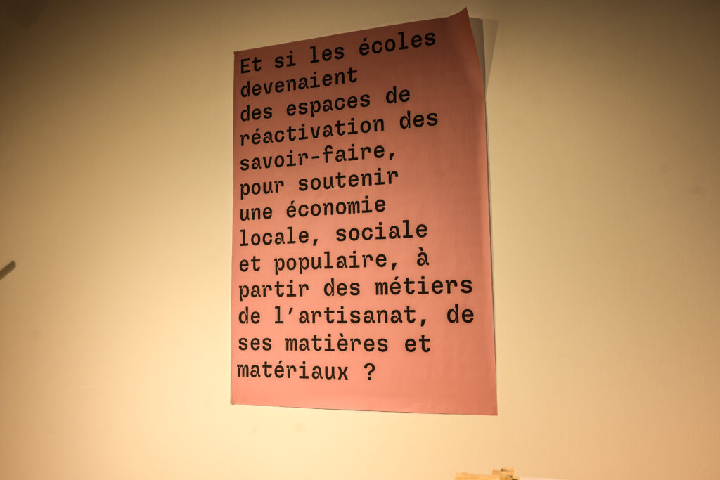 On peut d’ailleurs voir une affiche qui interroge « et si les écoles devenaient des espaces de réactivation des savoir-faire, pour soutenir une économie locale, sociale et populaire, à partir des métiers de l’artisanat, de ses matières et matériaux? » Au-delà de La Réunion, Arpentisaz interroge notre monde globalisé : comment préserver les spécificités locales quand le capitalisme tend à uniformiser pratiques et cultures ? Pour Amanda Goicovic, l’artisanat n’est pas un héritage figé mais une manière d’imaginer un avenir plus autonome et plus solidaire.