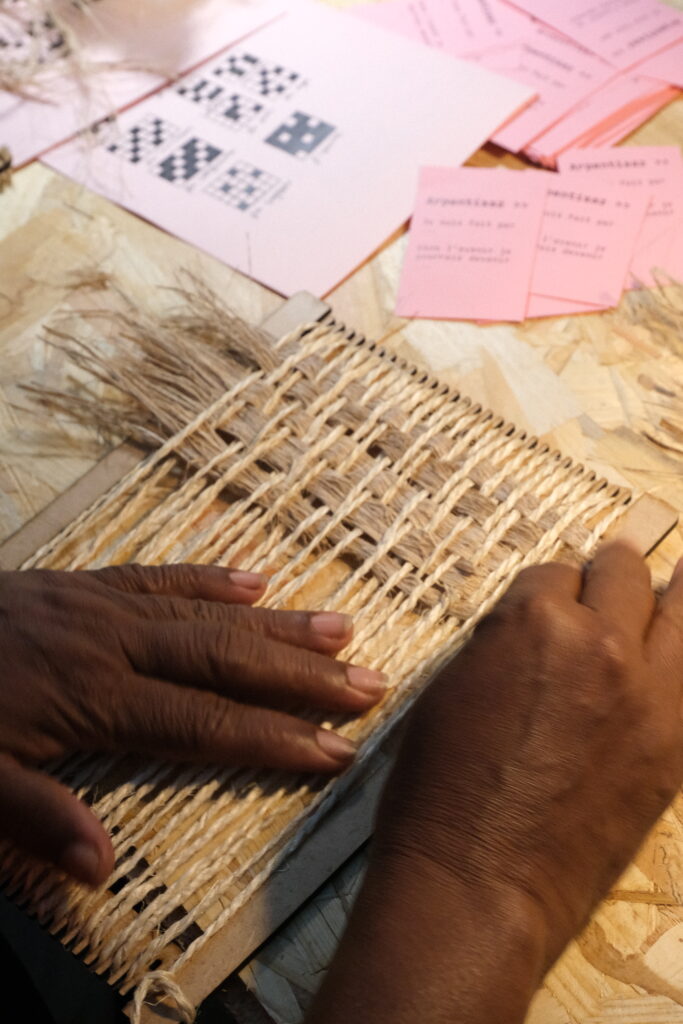 « C’est un concept où j’essaye de faire avec les gens et j’intègre leur travail dans l’exposition. L’idée est de dire que les territoires fabriquent leur avenir » explique l’artiste. Par exemple, lors des journées du patrimoine, elle avait organisé plusieurs ateliers pratiques autour de différents thèmes comme la fabrique d’objets à partir de matériaux naturels tels que le bambou, la fibre de bananier; une initiation au tissage de la laine de la plaine des Cafres. Des créations venues tour à tour nourrir l’exposition de départ.