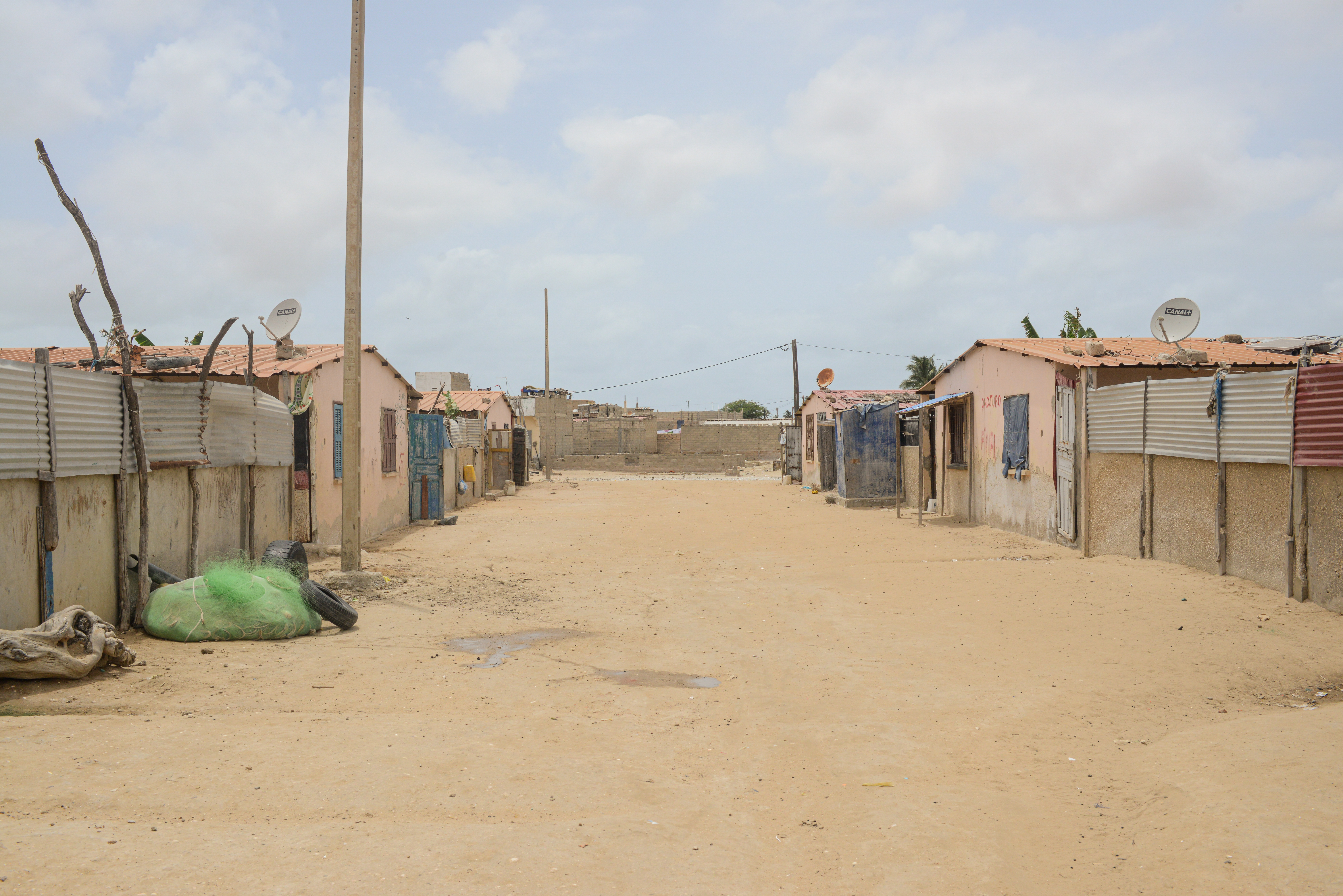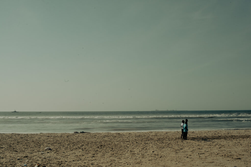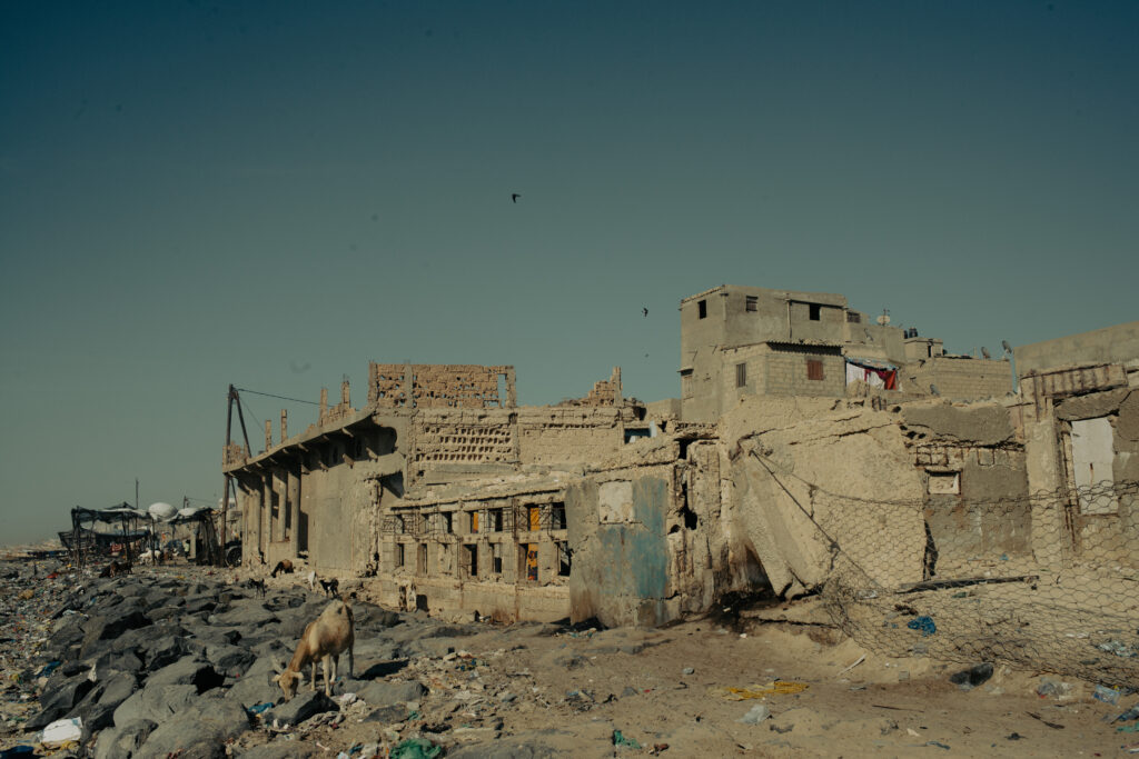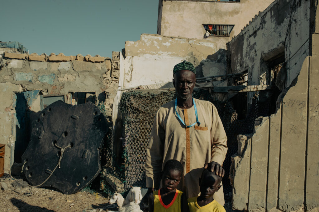 En 2015, 2016 et 2018, des vagues énormes ont submergé la langue de terre, se fracassant sur les premières habitations. Certains ont dû quitter leur terre natale pour se réfugier dans des nouveaux quartiers créés plus dans les terres. Dans le même temps, un projet gazier a été construit à seulement quelques kilomètres en face du village sur l’un des meilleurs spots de poisson. Nombreux sont ceux qui racontent que l’océan se vide de ses poissons, un sentiment accentué par les assauts répétés des gros chalutiers étrangers (chinois, indiens, européens) qui ont des accords avec l’État sénégalais ( fin 2024, le Sénégal a mis fin à l’ancien accord de pêche avec l’Union européenne).
