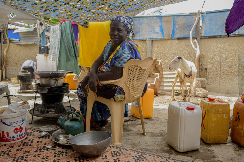 Fatou Fall Teuw, dans la cour de sa maison.