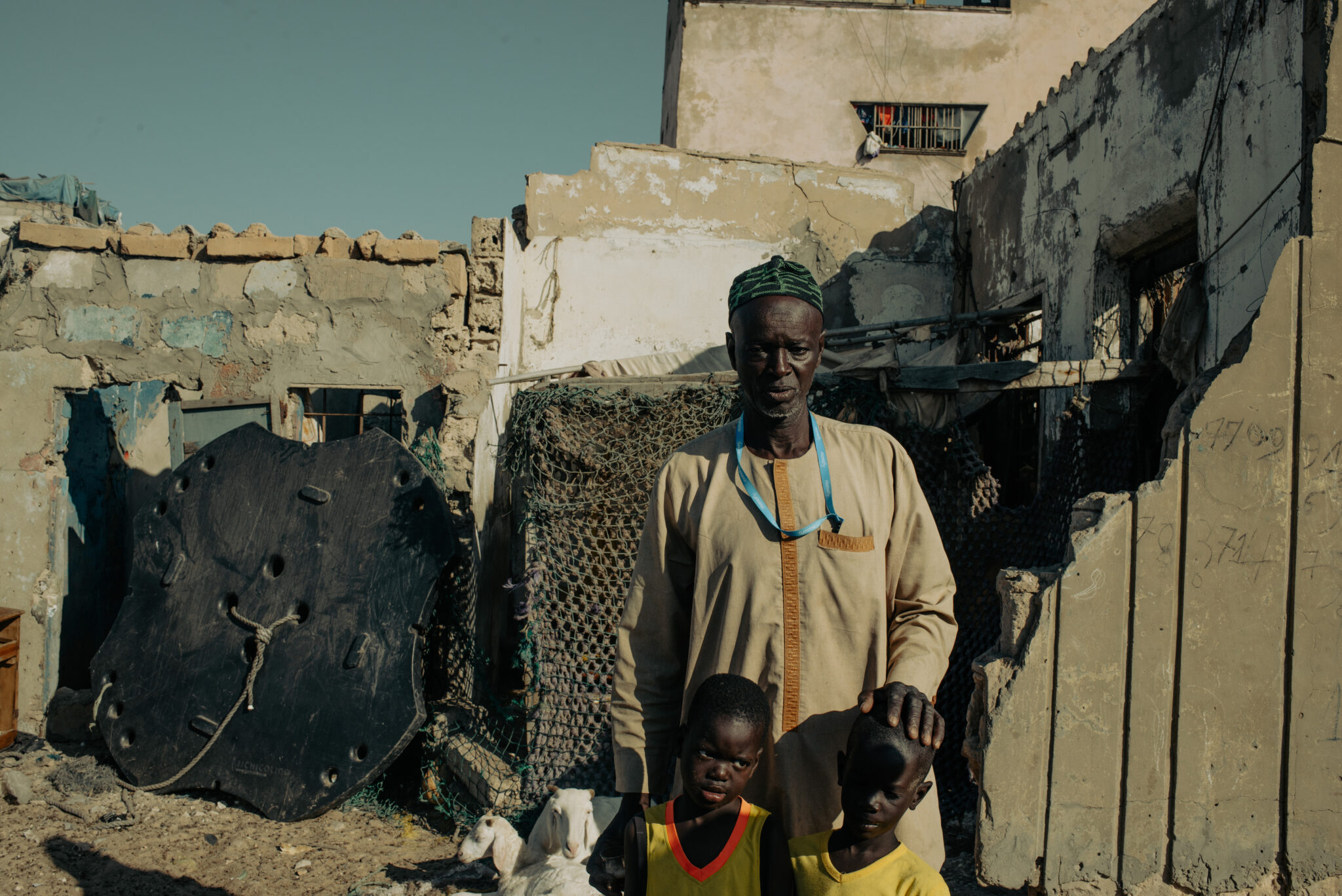 Ce voyage, Matar l’a fait, en 2016. La traversée a duré treize jours, bien plus que les quelques jours dont parlait le passeur au moment du départ. Père de sept enfants, il a pris cette décision car il voulait pouvoir donner plus à sa famille. Avec le recul, il déconseille le voyage même s’il comprend ceux qui continuent de le faire. « La vie des pêcheurs n’a fait que se durcir » dit Matar dans un murmure. Plus loin, il me présente Wally N’diaye, père de famille et capitaine de bateau. À 63 ans, ce sont ses fils qui font vivre la famille.