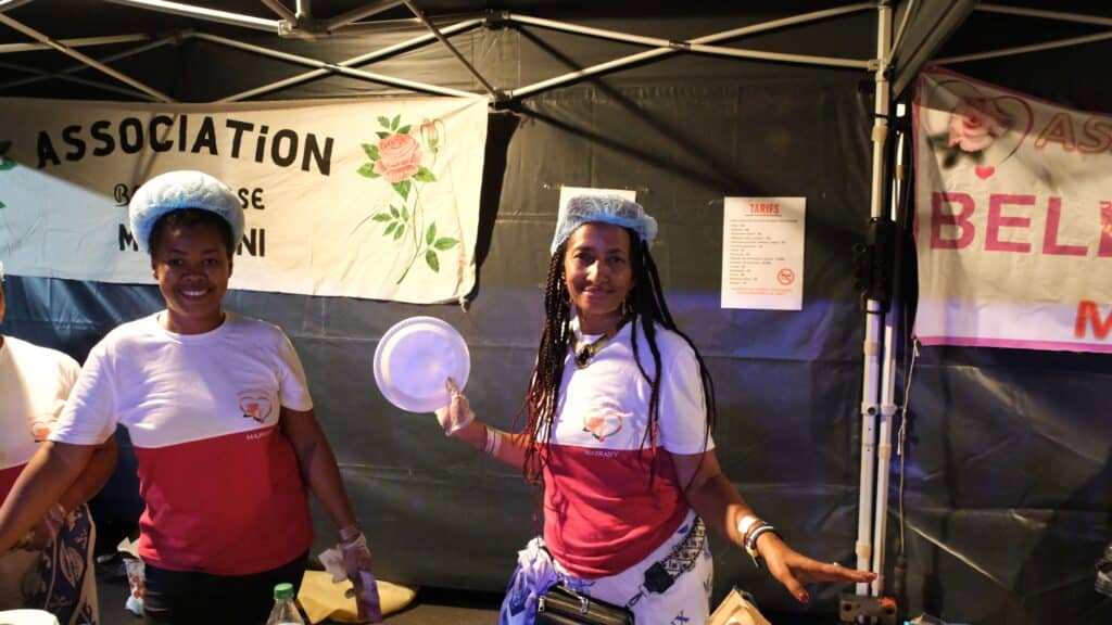 Pour marier aux nourritures spirituelles les nourritures terrestres, quoi de mieux que de manger un repas concocté par les dames de l’association Belle Rose. Parce que, tant qu’à découvrir la culture le l’île Hippocampe, autant le faire le ventre plein. En ces temps de défiance préfabriquée vis-à-vis de nos voisins mahorais, nous remercions le Kabardock de nous permettre de faire enfin connaissance.