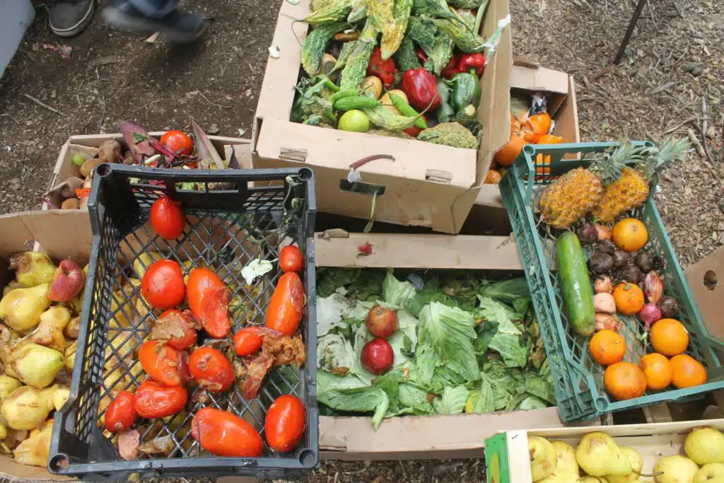 Dans les bacs de légumes, parmi les feuilles de choux éparses, tomates et poires écrasées, poivrons en partie gâtés rendent leur jus. « Tout ça va partir pour nourrir les animaux », explique JJ, 28 ans, qui a créé l’association Moun.e il y a deux ans. A côté, quelques caisses avec des légumes encore consommables, bien qu’ils aient perdu depuis longtemps leur première fraicheur. « Mais ça, on peut transformer, faire des tartes, des confitures, des compotes avec les pommes… ». Les légumes encore consommables seront transformés sur le rond-point Zazalé au Tampon ou distribués à la population gratuitement.