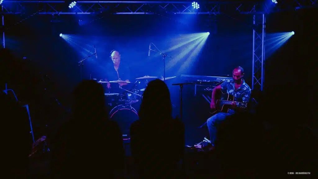 À 20 heures, Gilles Lauret et Sami Pageaux Waro prenaient possession de la scène du Bisik, prêts à partager en duo le projet, un solo de Gilles. Un premier titre enflammé, une reprise de Radiohead, « Weird Fishes », donne le ton et attise la curiosité des spectateurs attentifs et curieux.