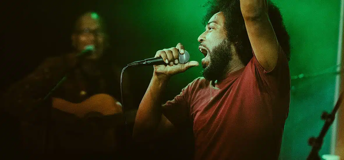 Son concert s’est ainsi déroulé entre reprises réinventées et compositions radieuses et le public sous le charme, captivé, n’a pas vu le temps filer à toute vitesse. L’occasion de découvrir une version très personnelle de « Mangé pou le cœur » du poète et musicien de La Réunion Alain Peters. Une interprétation à l’énergie si particulière interprétée avec virtuosité par la voix claire et prenante de Gilles accompagné par un Sami tonitruant à la batterie qui a joué de toute sa virtuosité et sa maîtrise des rythmes traditionnels qui font de lui un batteur unique.