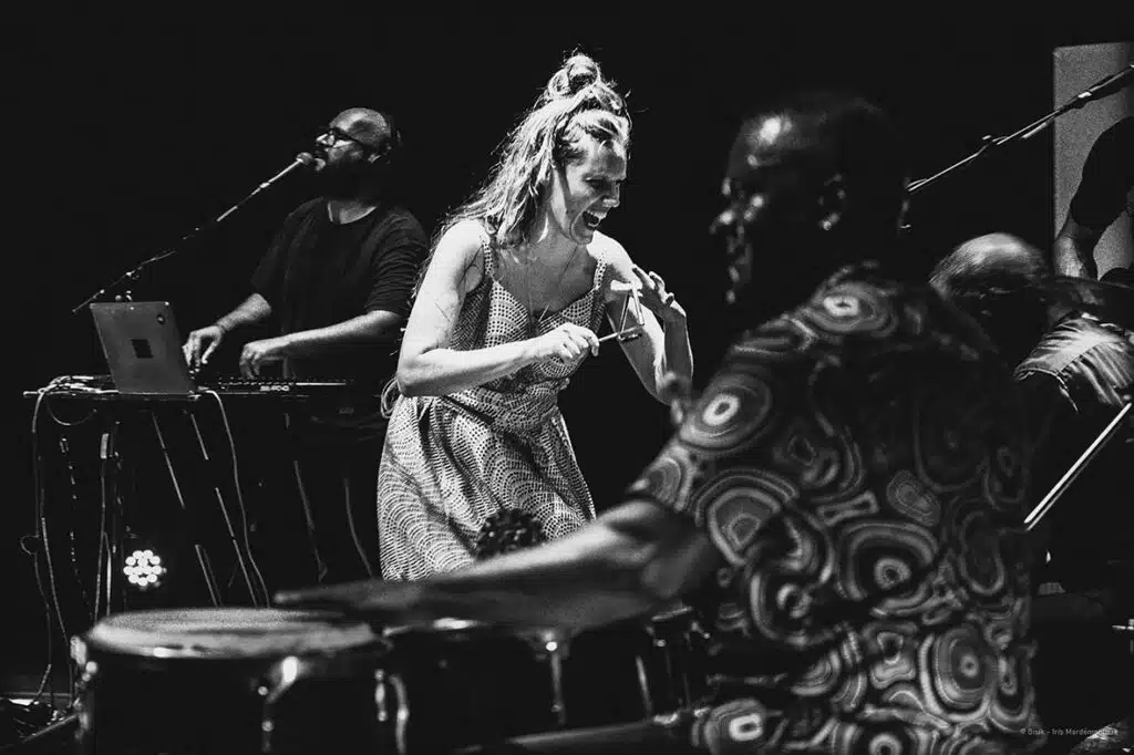 Le concert touche à sa fin et la salle est chauffée à blanc, le public est debout et tous les artistes se retrouvent sur scène pour un grand final sur un « Maloya Gazé » véritablement explosif. Florence Boyer (Cie Artmayage) et sur scène et transe elle aussi clôturant ainsi la soirée sur une note euphorique et libérée de toute entrave ! Une performance magistrale !