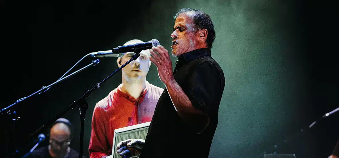 Après un changement de plateau rondement mené, Grèn Sémé fait son entrée sur scène entraîné par le charismatique Carlo de Sacco. Avec Germain Lebot (batterie, percussions, chœurs), Rémi Cazal (programmation, synthétiseurs, chœurs), Bruno Cadet (guitares, chœurs) et Mickael Beaulieu (Rhodes, synthétiseurs, chœurs) le groupe donne le ton du concert qui s’annonce avec une intro musicale tonitruante. Avec un maloya original et toujours évolutif aux texte ciselés et poétiques, Grèn Sémé distille une poésie rock, des pulsations dub et des rythmes ternaires toujours aussi puissants !