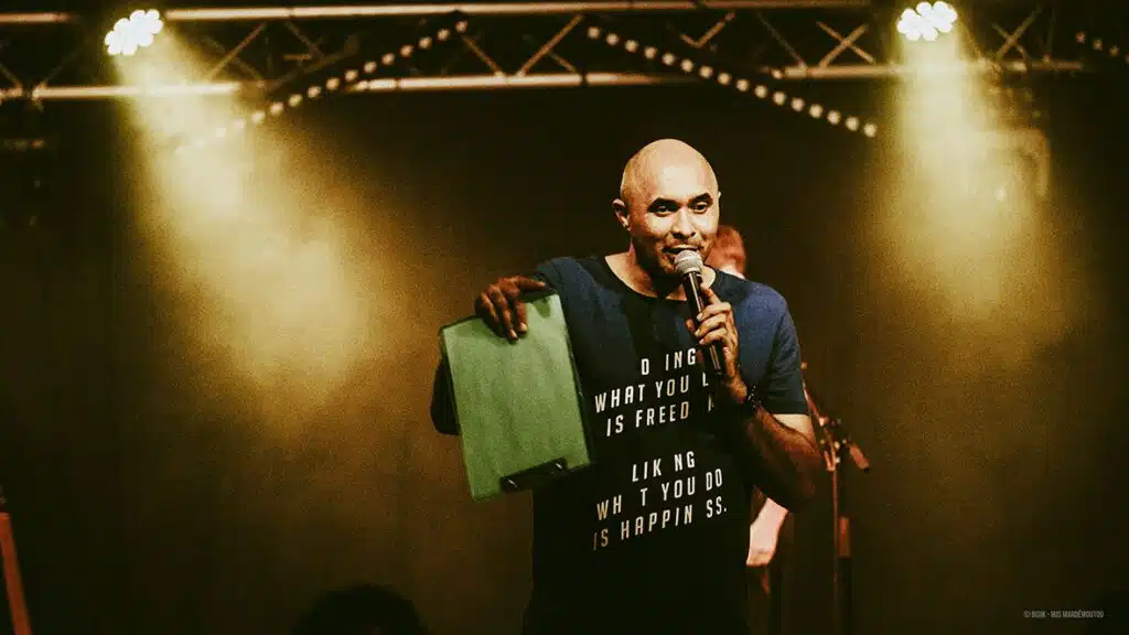 Promié pou rant dann ron (réktangl du cou ☺) kom i di té nout parin Eric Naminzo… Eric Véli lo fonnkézér, misiziyn, amontrér… boug milti fasét mé sirtou milti talan, militan, pou zoué ek lo mo sinon lo son. Otantik li la léss lo kér kozé pou grinn son(K)ozé an fonnkér, an shanté lo gou bonbon domiél.