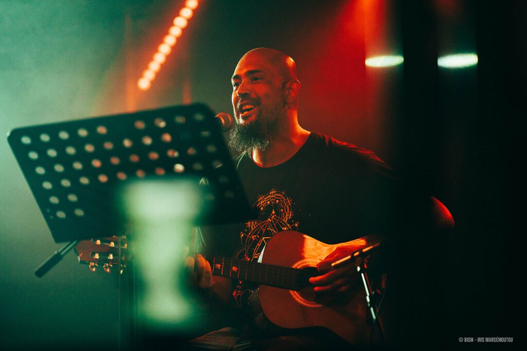 *Chris Haga* : né au Port, Chris Haga chante depuis son adolescence. Il débute au sein de groupes rock pour progressivement élargir sa palette musicale. De 2003 à 2017, il demeure à São Paulo du Brésil où il fonde et intègre de nombreuses formations professionnelles dont Les Serges, groupe de jazz-bossa-samba en français, portugais et anglais, où il performe au chant et à la percussion, avec lesquelles il participe à de multiples tournées dans toutes les grandes villes de ce pays. De retour à La Réunion en 2017, il continue Les Serges sur les scènes de l’île et enregistre ses nouvelles compos en solo lors d’une résidence à la Cité des Arts fin 2018. Il débute sa collaboration avec le groupe de reggae dub Sly Sugar. Jazz, bossa, maloya, samba, rock, afro-beat, latino, chanson, reggae, soul, blues, créole, anglais, portugais, français, chant, guitare, cajon, kayamb, roulér, pandeiro, son univers musical est riche et en perpétuelle expansion.