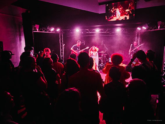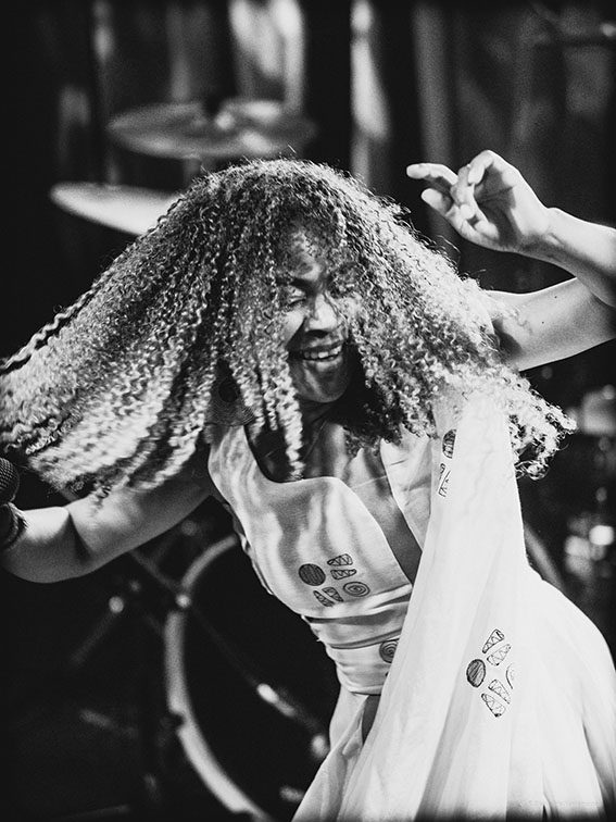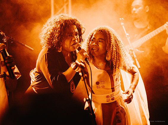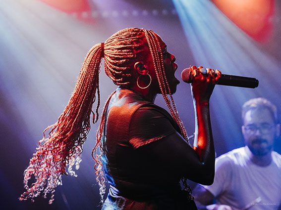 Après cette ouverture de soirée époustouflante, à peine le temps d’un changement de plateau et la soirée se poursuit avec Eusébia, fière représentante de la nouvelle génération du Salegy de la Grande île.