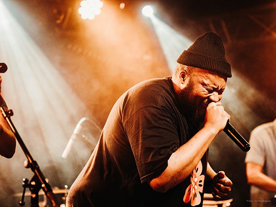 La soirée est lancée de manière magistrale par Stogie T, Véritable O.G. du hip-hop sud-africain, qui nous fait l’honneur de sa présence après une prestation sur la scène de la Poudrière explosive.