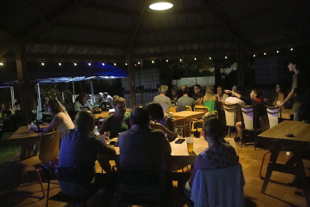 Il a exceptionnellement mixé jusqu’à 20h30, avant de laisser place à Aleksand Saya. Sous un ciel dégagé, koté jardin et koté kour, beaucoup d’entre vous profitent de la convivialité et de la fraîcheur des lieux, mais aussi de la vidéo projection du concert pour pouvoir rester près des vôtres et apprécier l’instant.